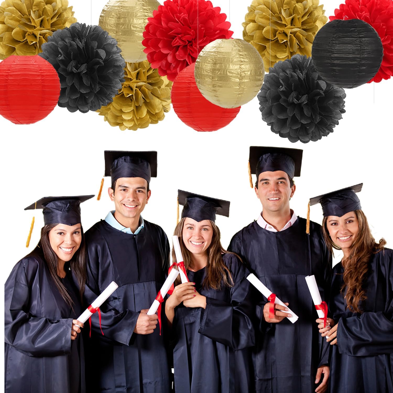 - 【Red Black Gold Party Decorations Kit Includes】2pcs 8inch red+2pcs 8inch black +2pcs 8inch gold paper lantern,1pc 8inch black+1pc 8inch red+1pc 8 inch gold paper pom pom ,2pcs 10inch black+2pcs 10inch red+2pcs 10inch gold paper flower,total 15pcs.