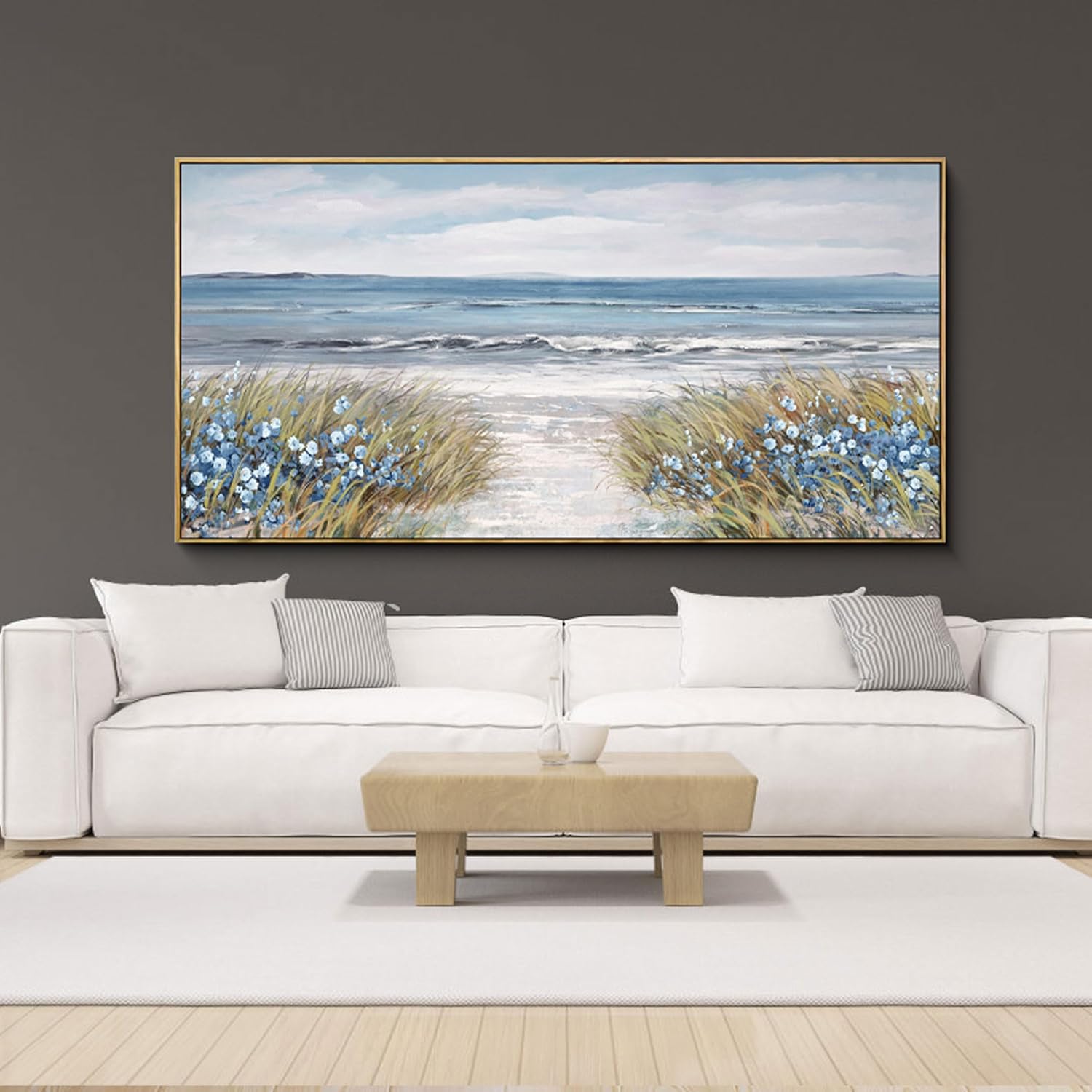 XLSJERST Large Framed Wall Art for Living Room Decor - Farmhouse Boho Beach Coastal Vintage Floral Ocean Wall Picture Flowers Sea Canvas Print Artwork for Home Bedroom Office 29x58