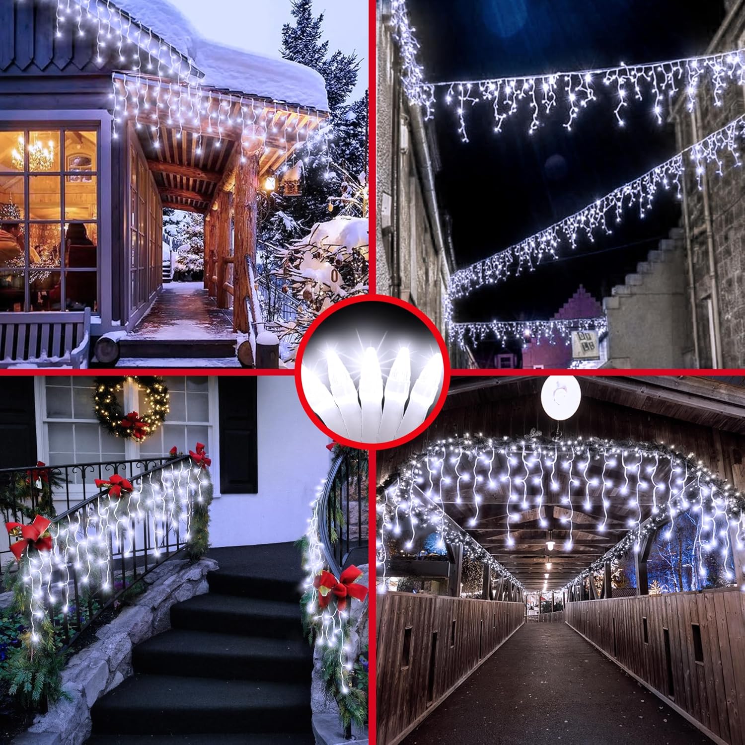 - Bring Christmas Magic to Every Corner: Ready to create a warm and festive atmosphere? Our 131ft christmas iciclelights with 1296 LEDs total 288 drops are ideal for decorating porches, doorways, balconies, and even windows. Whether you’re adding a touch of Christmas cheer to your apartment or brightening up your backyard patio, these lights will instantly turn your space into a winter wonderland