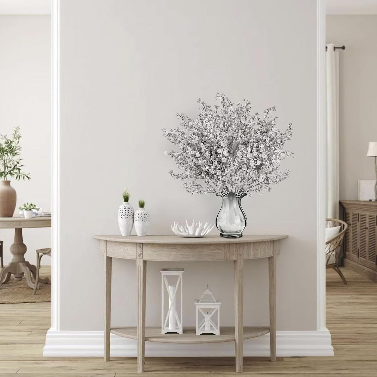 - [REALISTIC APEARRANCE]:This gypsophila bouquet have vibrant color and lifelike features. It gives your home a feeling of vivid, natural and elegant. Every petal is naturally curled and manually installed, you can feel the rich layers and softness of the silk.
