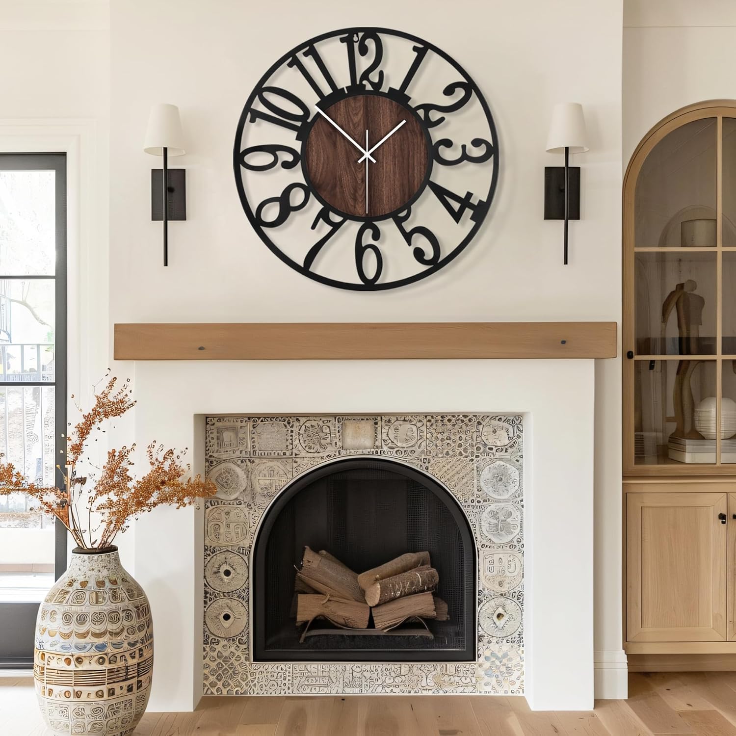 - Modern Design:wall clock is designed with a combination of black walnut color wood veneer and black Arabic numerals. It is suitable for most American style and modern decoration, perfect to decorate your house.