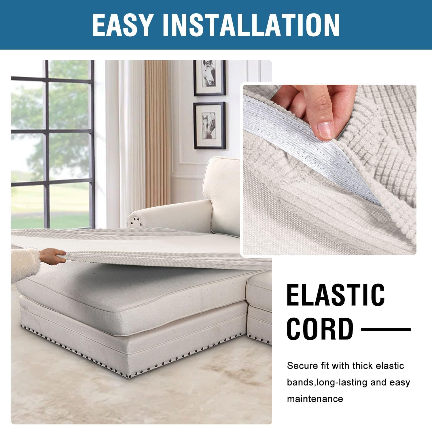H.VERSAILTEX Super Stretch Individual Chaise Cover Sectional Couch Covers for L Shaped Sofa Both Left/Right Featuring Thick Jacquard Textured Twill Fabric (1 Piece Chaise Cover Large, Ivory)