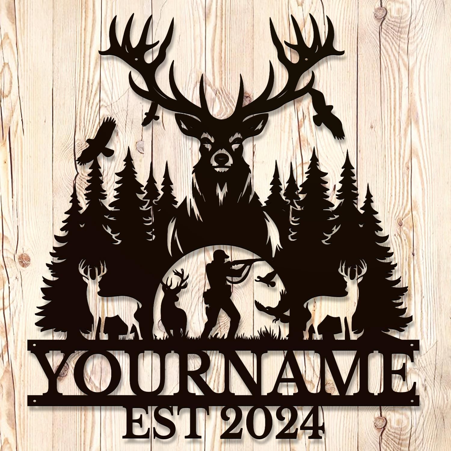 Personalized Deer Forest Name metal Signs,Custom Shed Metal Wall Decor,Black Deer Metal Wall Art Decor,Deer Home Metal Signs Plaques,Outdoor wall Decorative Signage (Style D)