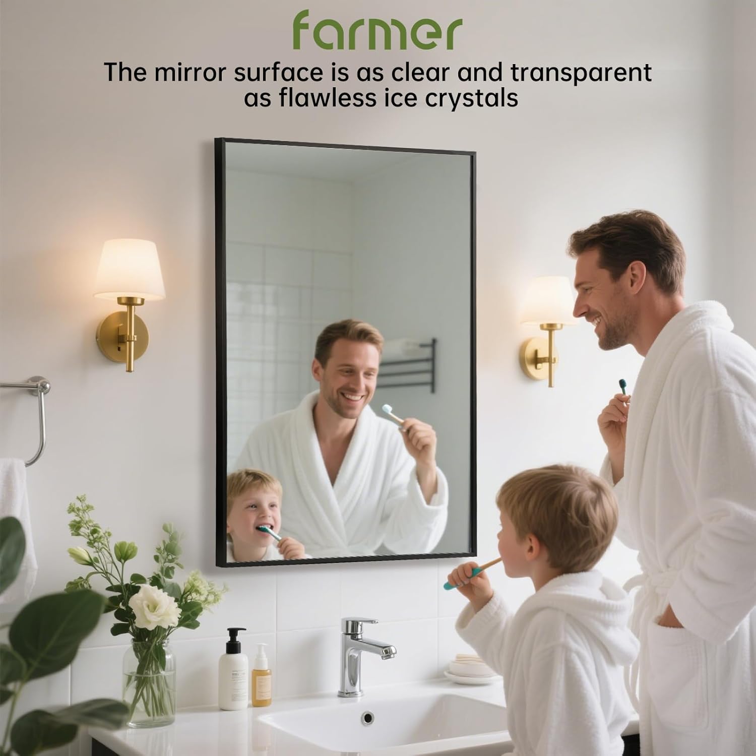 FARMER 22x30 Inch Black Bathroom Mirror, Rectangle Wall Mounted Mirror, Vanity Mirror, Brushed Square Mirror, Framed Bathroom Mirror for Bedrooms, Entryways, Living Rooms, Horizontal/Vertical