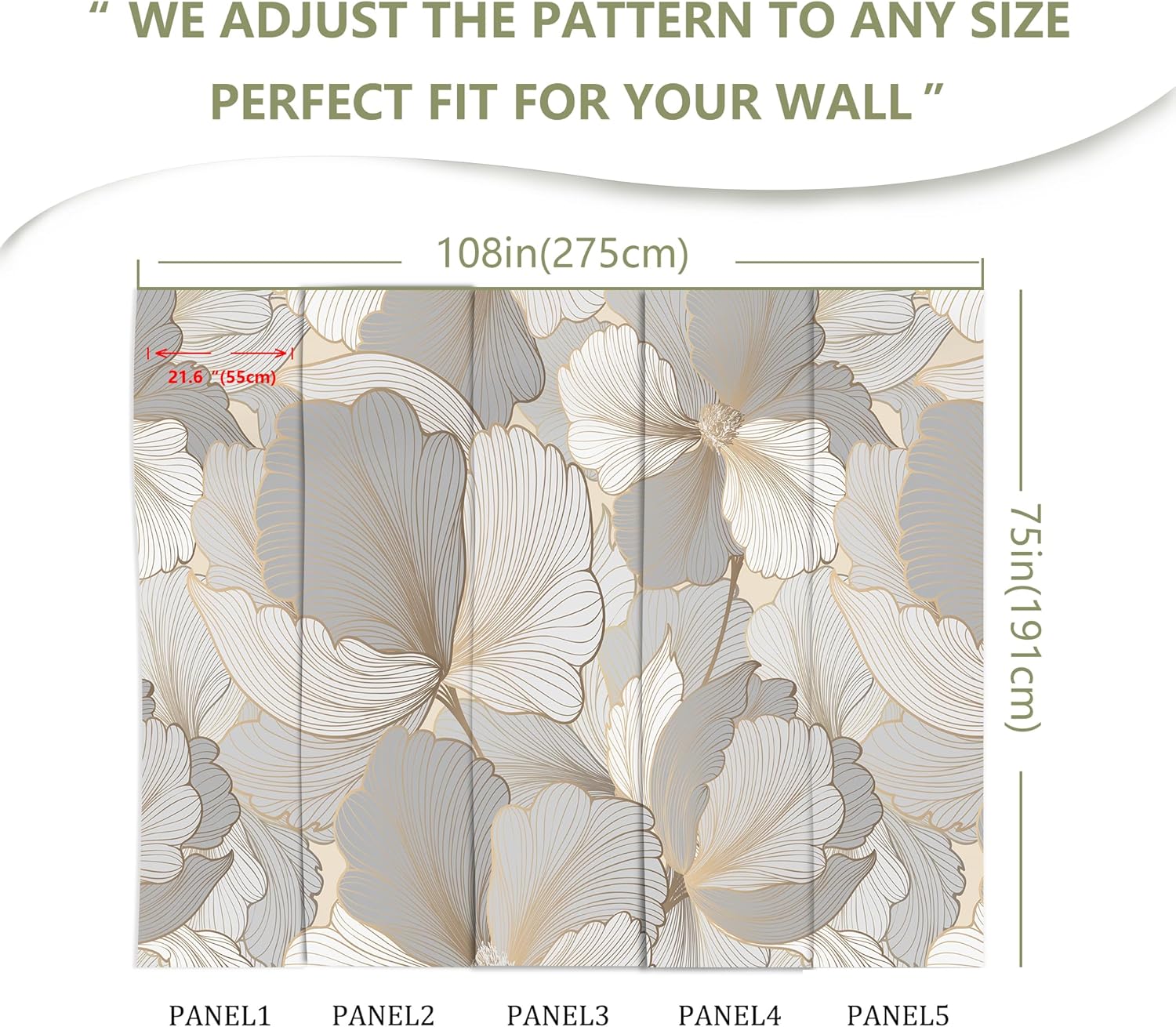 - MURAL SIZE - Approx.108"x75"(Wx H), This mural wallpaper cut into 5 strips. All is marked with number under each strip. You can put it in sequential order before you install it.