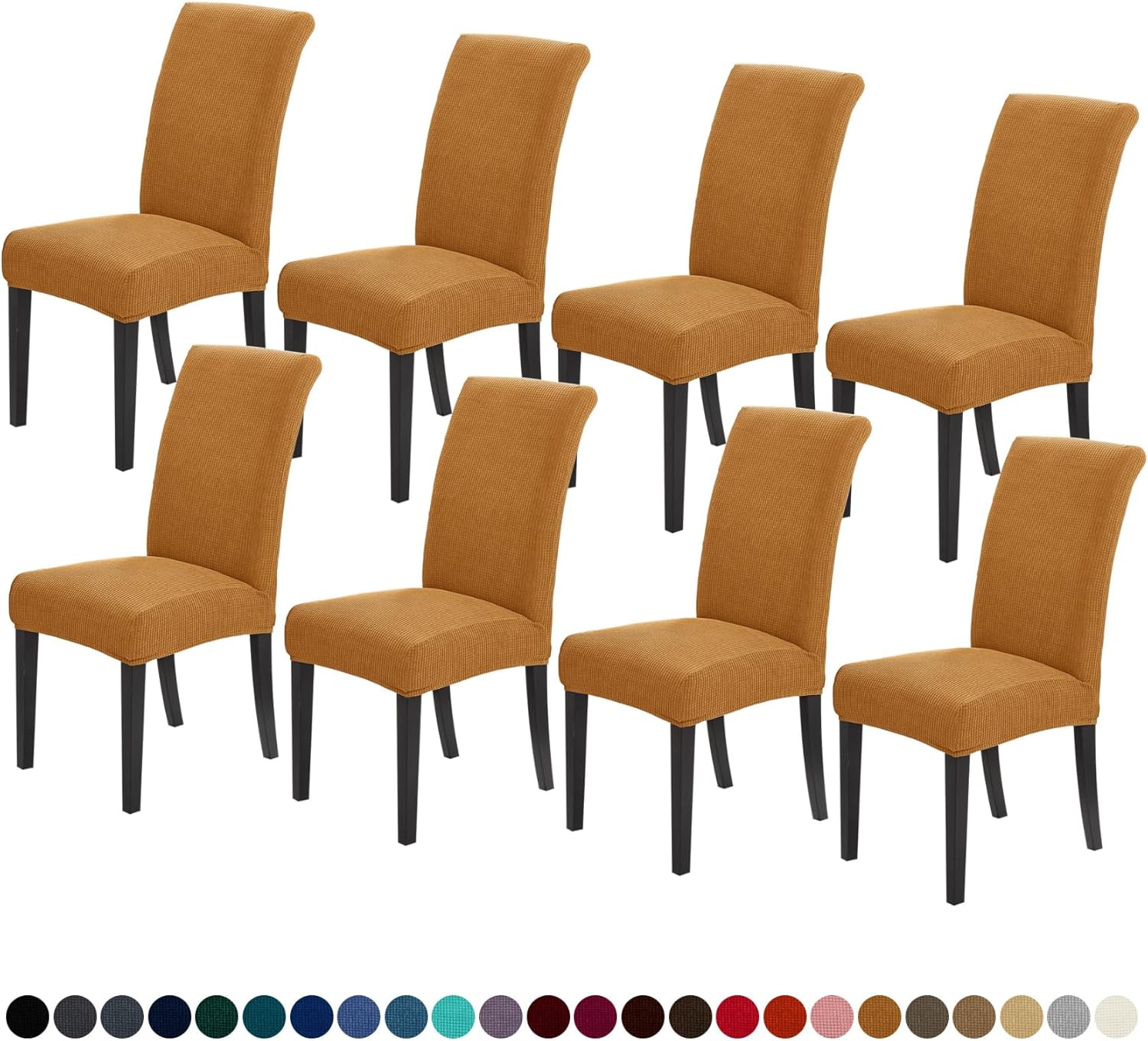 Joccun Chair Covers for Dining Room Set of 8, Dining Chair Slipcovers Stretch Dining Room Chair Covers Seat Protector,Washable Parsons Chair Cover for Home,Hotel,Banquet(Gold,8 Pack)