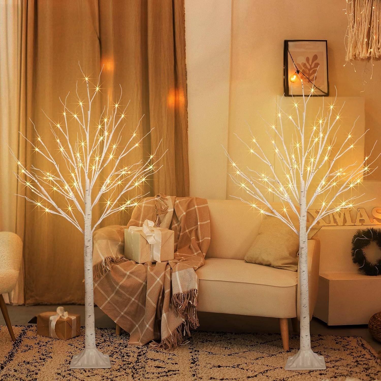 - Upgraded Christmas Birch Tree Lights : Overall height of 4 FT tall birch tree lights with each 50 warm white LED fairy lights on two tree lamps; about 33 inches of wire long enough to move the birch tree around as you please; also comes with a sturdy 8 inch square base to ensure the stability of the birch tree; use realistic birch bark to wrap the trunk and branches of the white Christmas tree to create a natural and romantic atmosphere in your home.