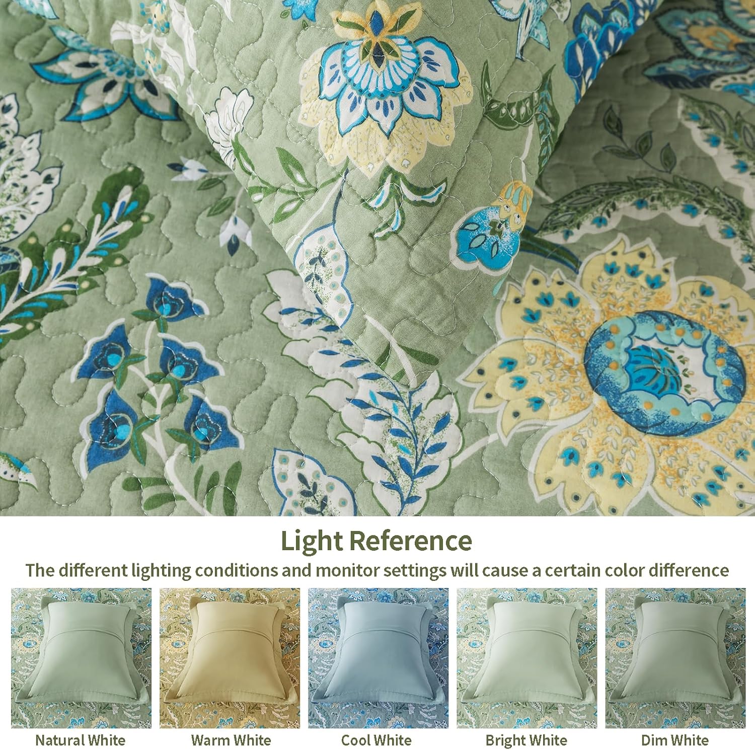 VAPUTAR King Quilt Bedding Set - Cotton Bedspreads King Size (98 x 106 inch) with Floral Pattern, Farmhouse Lightweight King Size Quilt Suitable for All Season(3 Pieces, Olive Green)