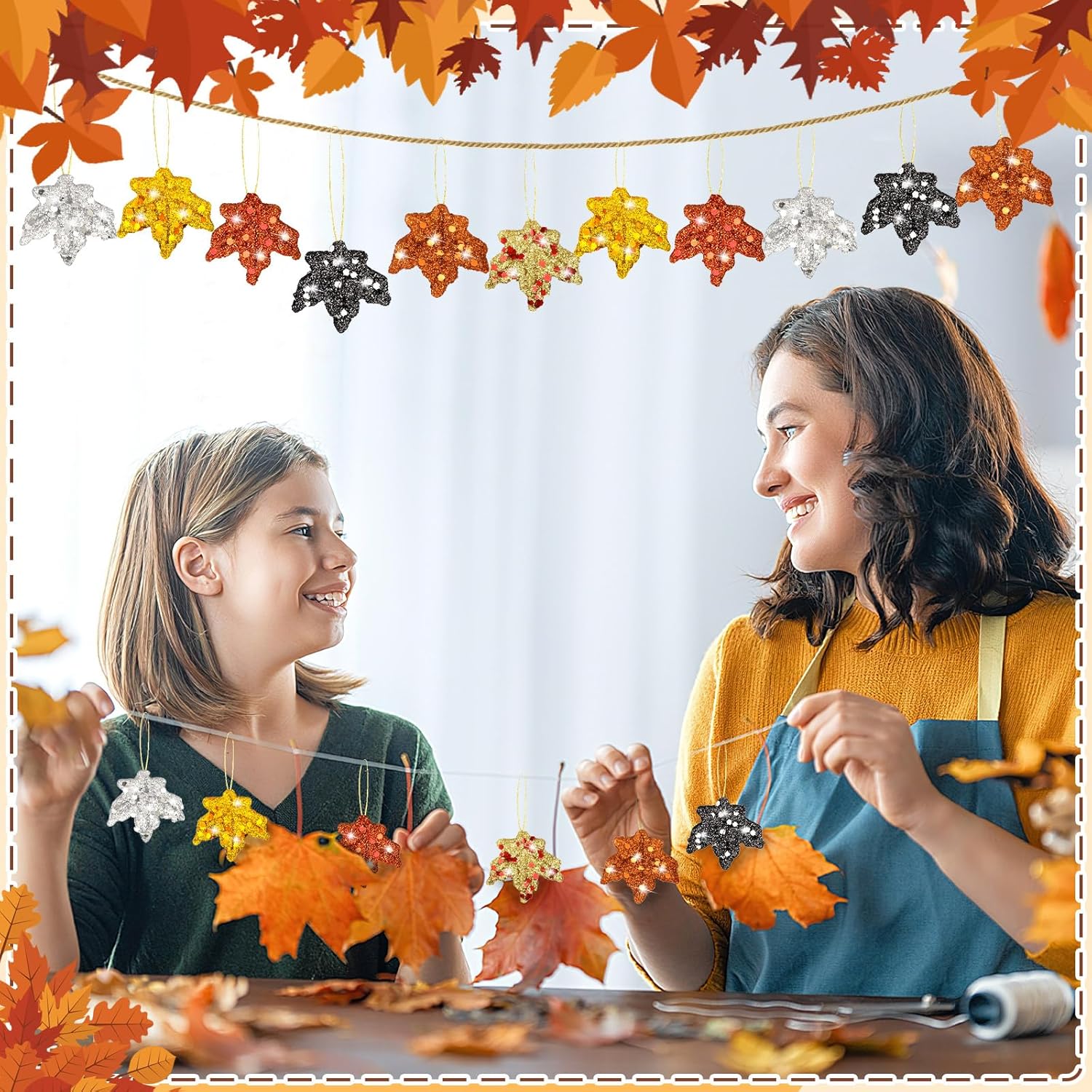 - Widely Used: These colorful Thanksgiving glitter maple leaves are an ideal choice for you to decorate scenes, and are suitable for decorating parties, dances, lawns, doors and windows, ceilings, offices, study rooms, yards, fences, gardens, tables, mantels and more, adding a festival and warm feeling to your space