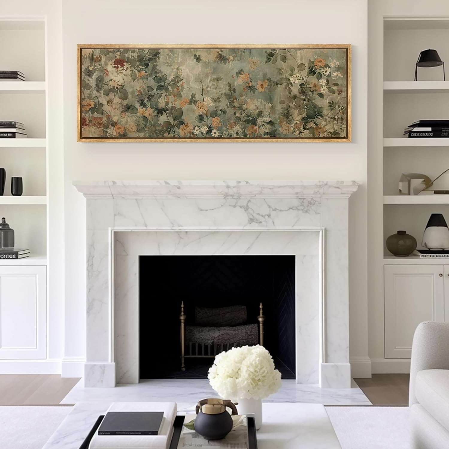 MUDECOR Large Framed Canvas Print Wall Art Minimalist Ink Branches Illustrations Antique Retro Fine Art Illustrations Decorative Colorful for Bedroom - 60"x20"