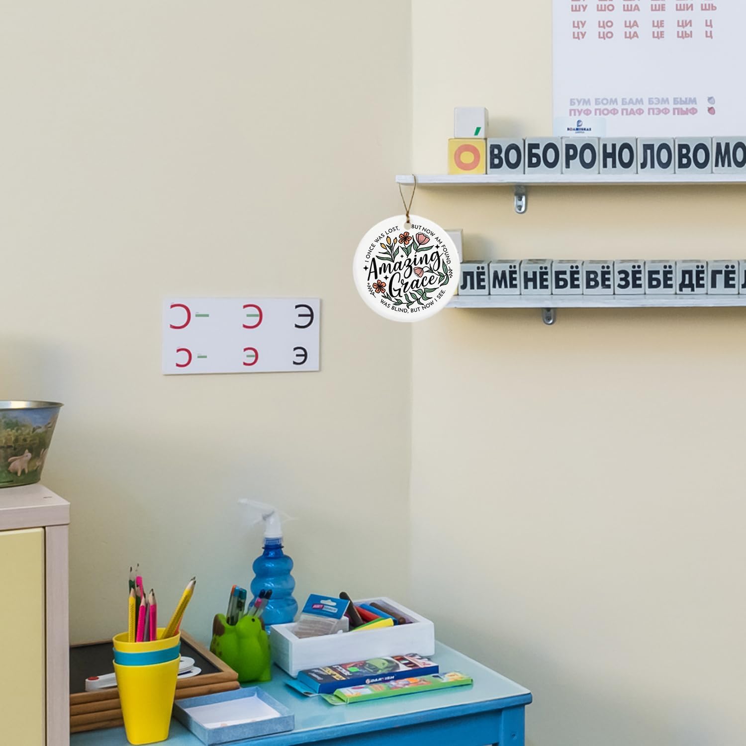 Christian Ornaments, Amazing Grace Scripture Wildflower Floral Ceramic Ornament Keepsake Decorations, Christian Gifts for Women Teen Girls