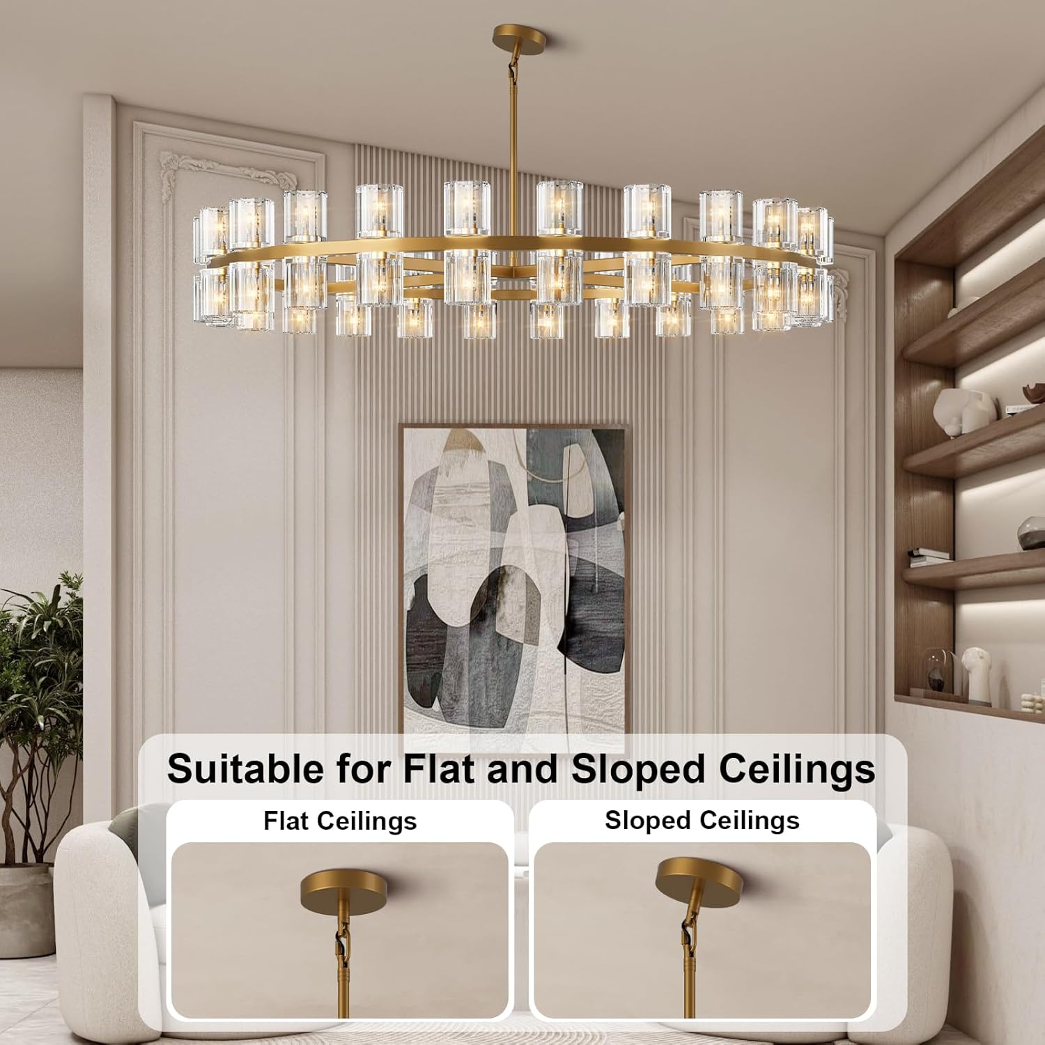 - Wide Application: Modern round chandelier for dining room suitable for your restaurant, kitchen island, bathroom, stairs, bedroom, living room, library, foyer, hallway, dining room.Supports ceiling style,flat ceiling, and sloped ceiling.