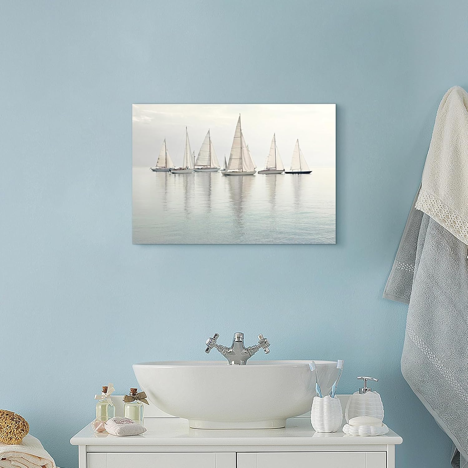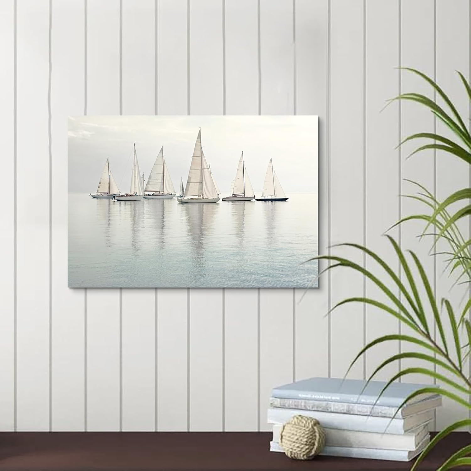 - Serene Seascape Ambiance: The 16x11” ocean wall art canvas captures the sailboat on a calm sea, bringing a sense of peace and relaxation to your home or office. The artwork features a palette of gray and white tones with touches of aqua green, creating a fresh and soothing atmosphere
