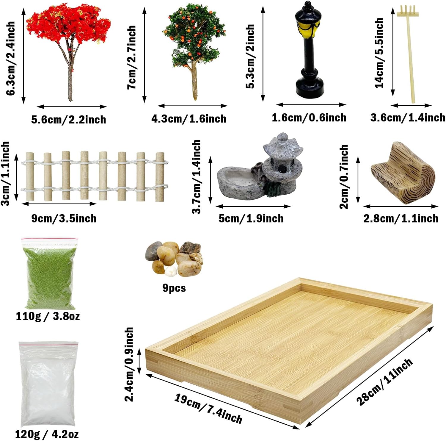 - Mini Zen Garden Kit: The set includes 26 PCS yard miniatures and 1 PCS 28 x 19 x 2.4cm/ 11 x 7.4 x 1.9 inch bamboo tray. Use this mini tabletop sand Zen garden! Wish you enjoy your garden time.