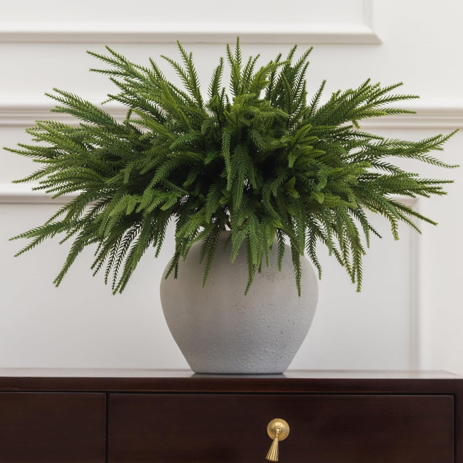 - 【Premium Quality and Natural Appearance】Crafted from high-quality PE, these branches mimic the natural green color of real Norfolk Pine, offering both aesthetic beauty and durability. After opening the package, simply let the product air out for a few hours to eliminate any initial odor, ensuring a better experience. Note: Vase not included.