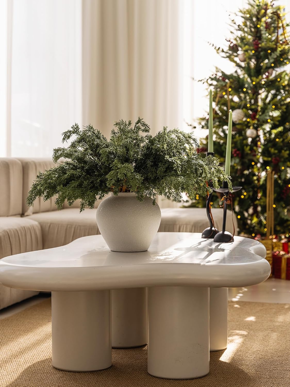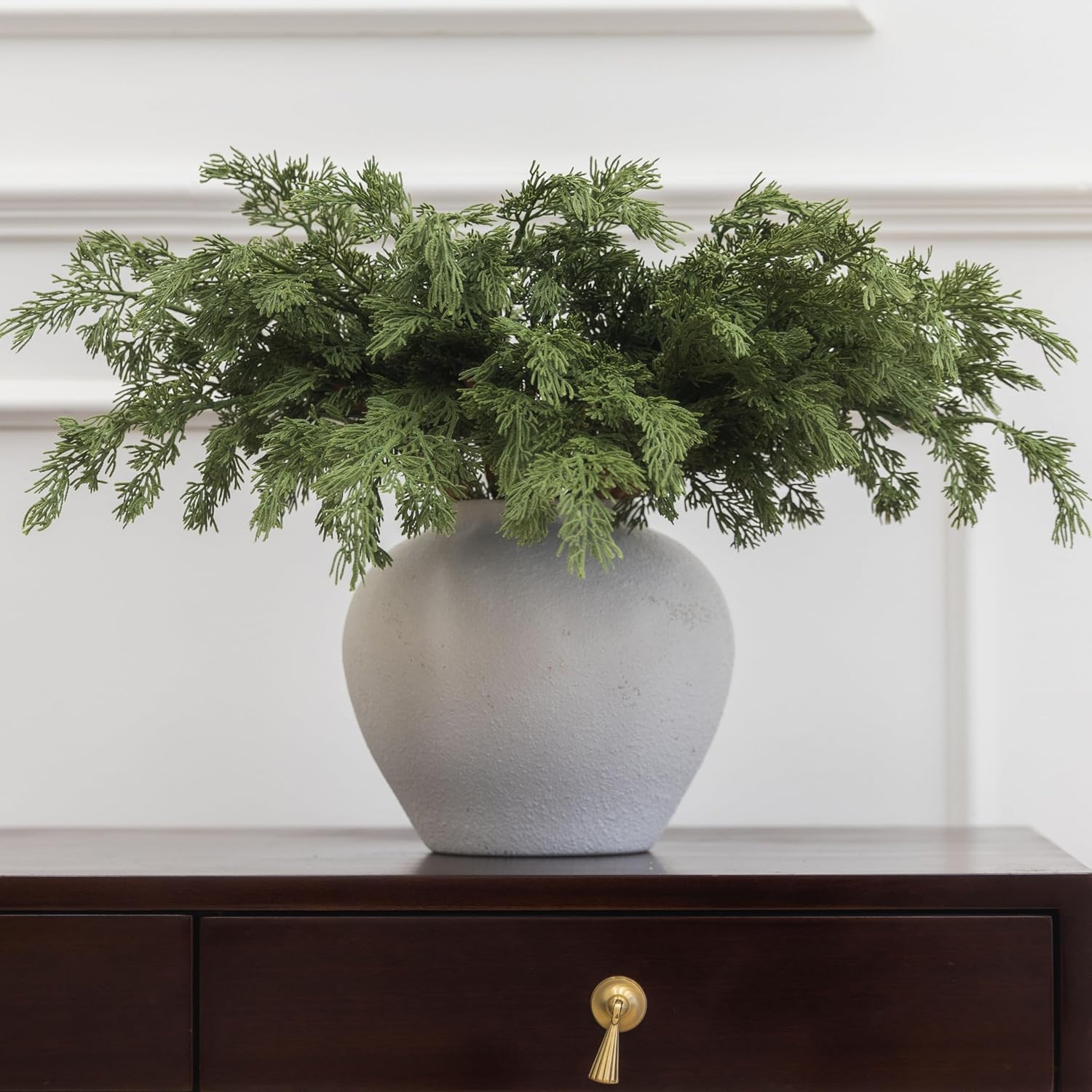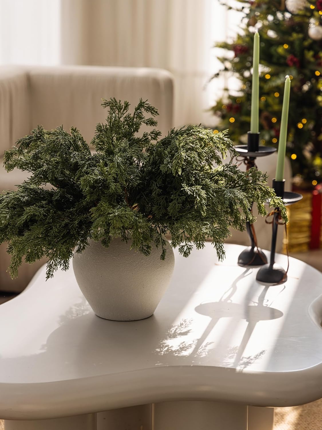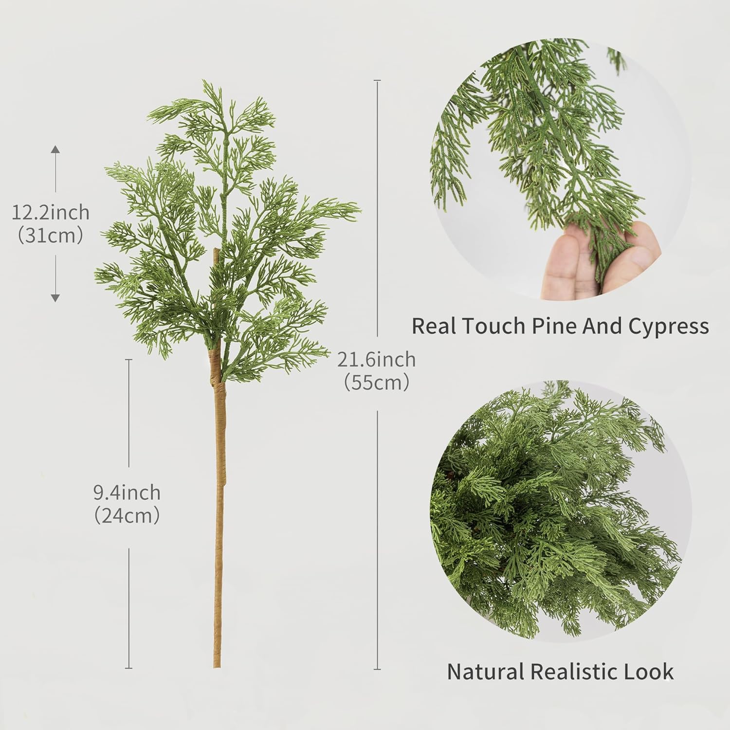 - 【Premium Quality and Natural Appearance】Crafted from high-quality PE, these branches mimic the natural green color of real cedar, offering both aesthetic beauty and durability. After opening the package, simply let the product air out for a few hours to eliminate any initial odor, ensuring a better experience. Note: Vase not included.