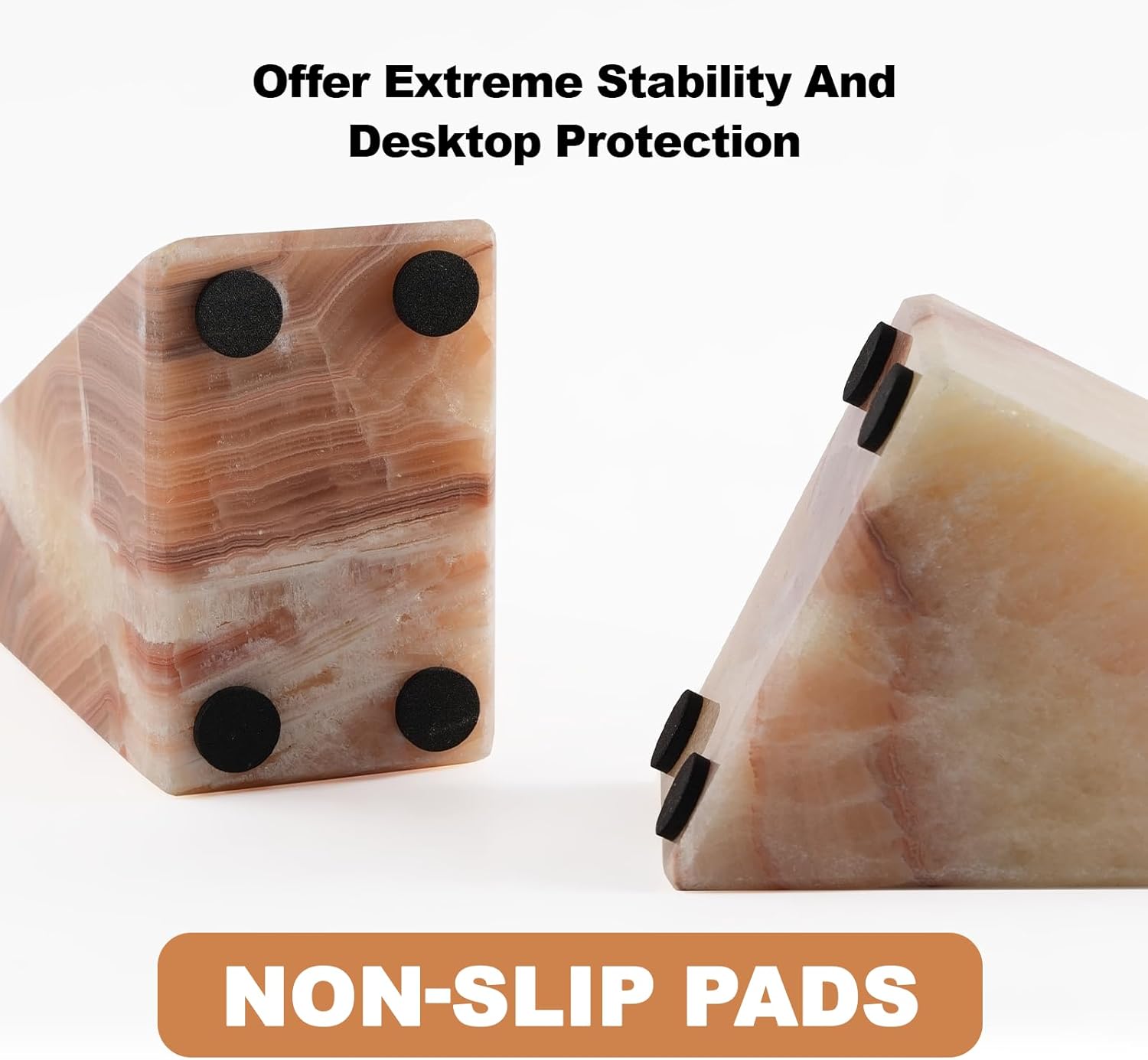 - STRONG AND DURABLE: These onyx from Mexico carry a rich cultural and historical sentiment in shades that resemble the afterglow of a sunset. Made of high-quality marble, karibiber unique decorative bookends for shelves maintains long-term stability and will not be deformed by external factors, ensuring that your books are always securely placed.
