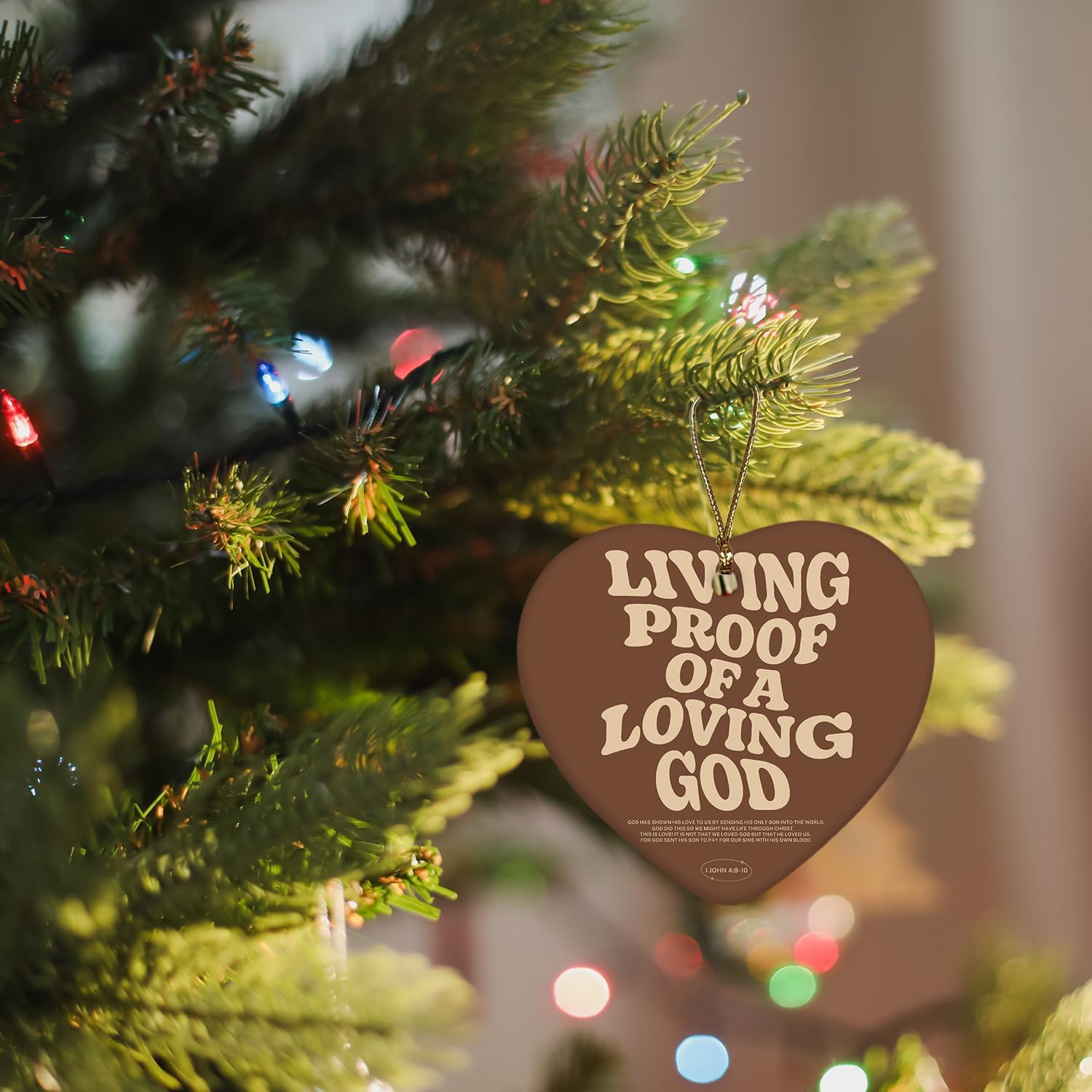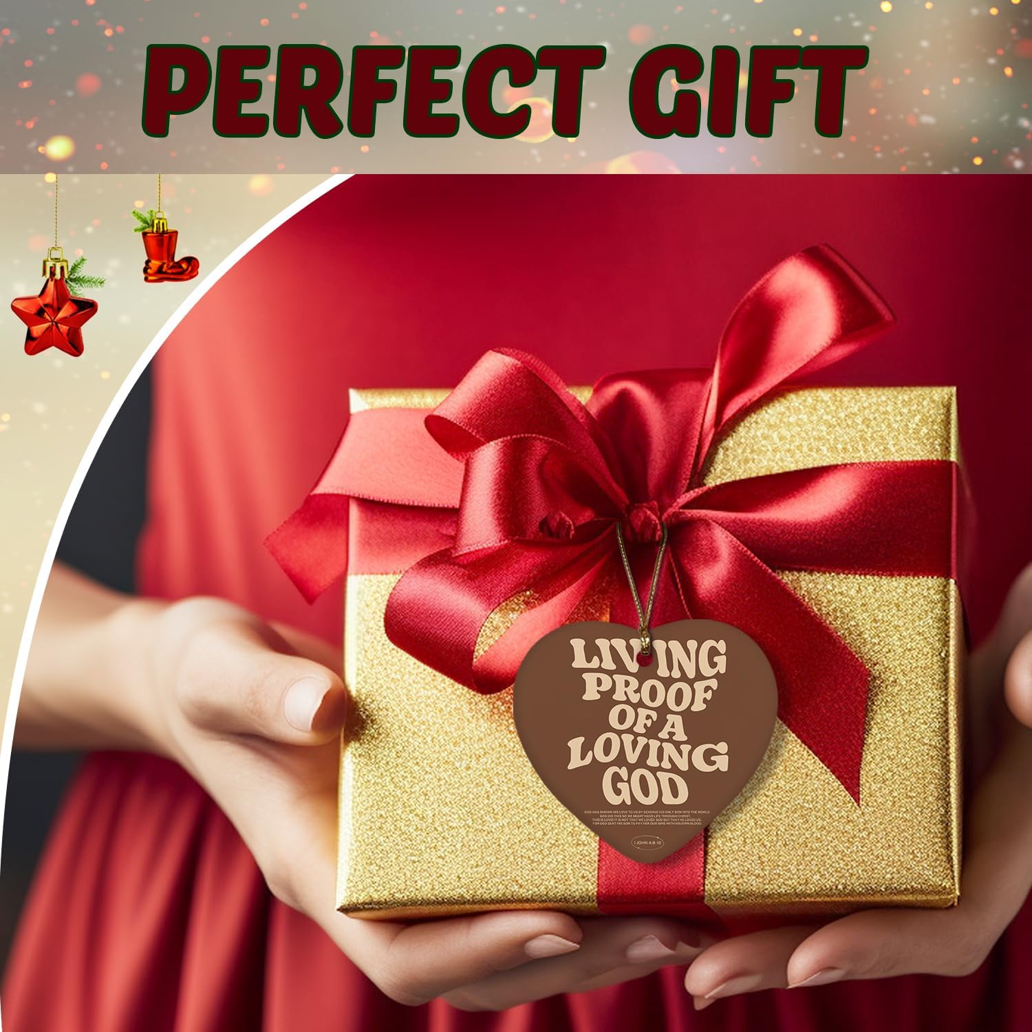 Christian Ornaments, Living Proof of a Loving God Scripture Religious Ceramic Ornament Heart Keepsake Decorations, Christian Gifts for Women Teen Girls