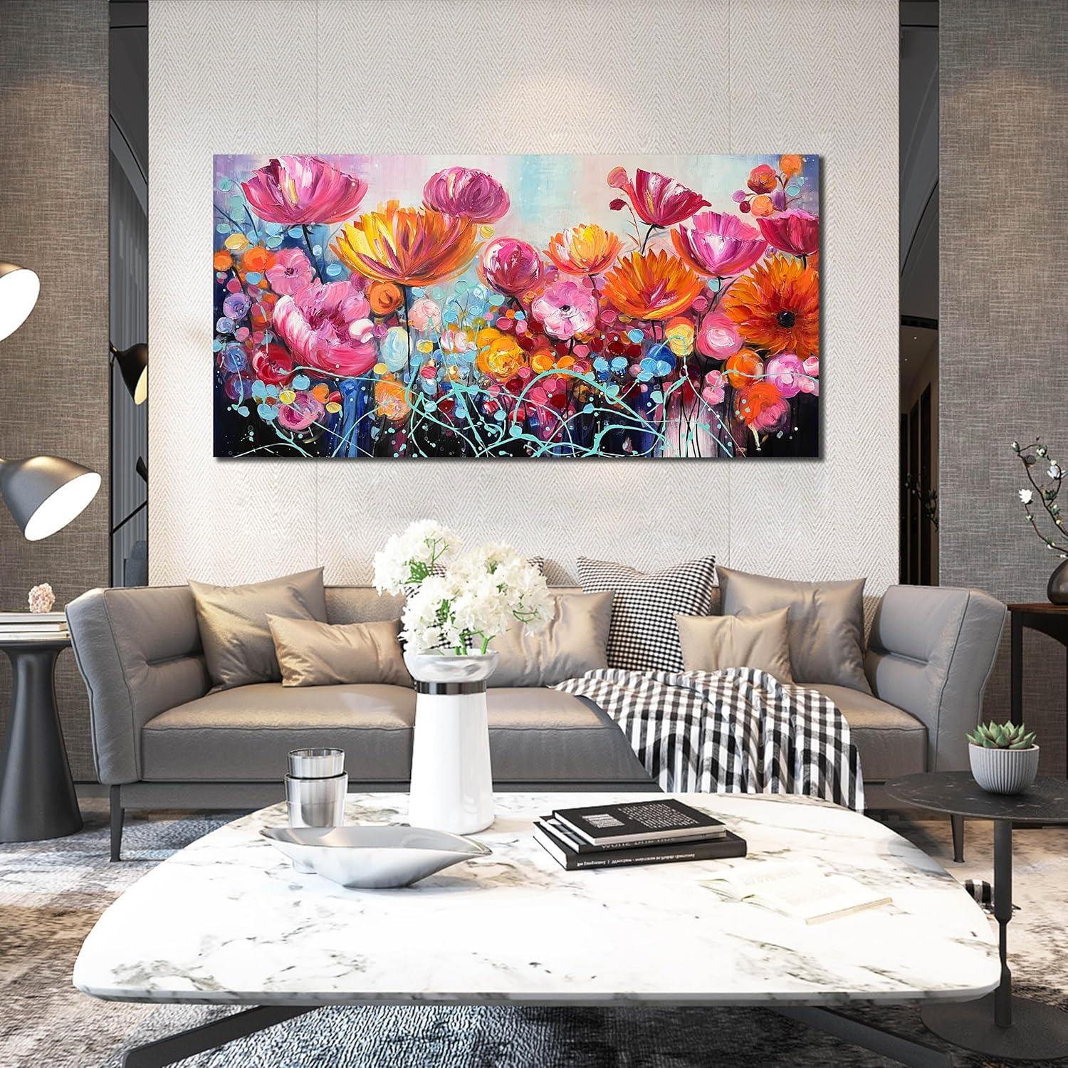 - QUALITY ASSURANCE: β Hand-painted version for more texture. β‘ The wooden frame is very stable and lightweight. β’ Waterproof canvas can be gently wiped with a damp cloth. β£ Not easily fading. β€ The back of the canvas art wall decor is equipped with metal hooks, easy to hang