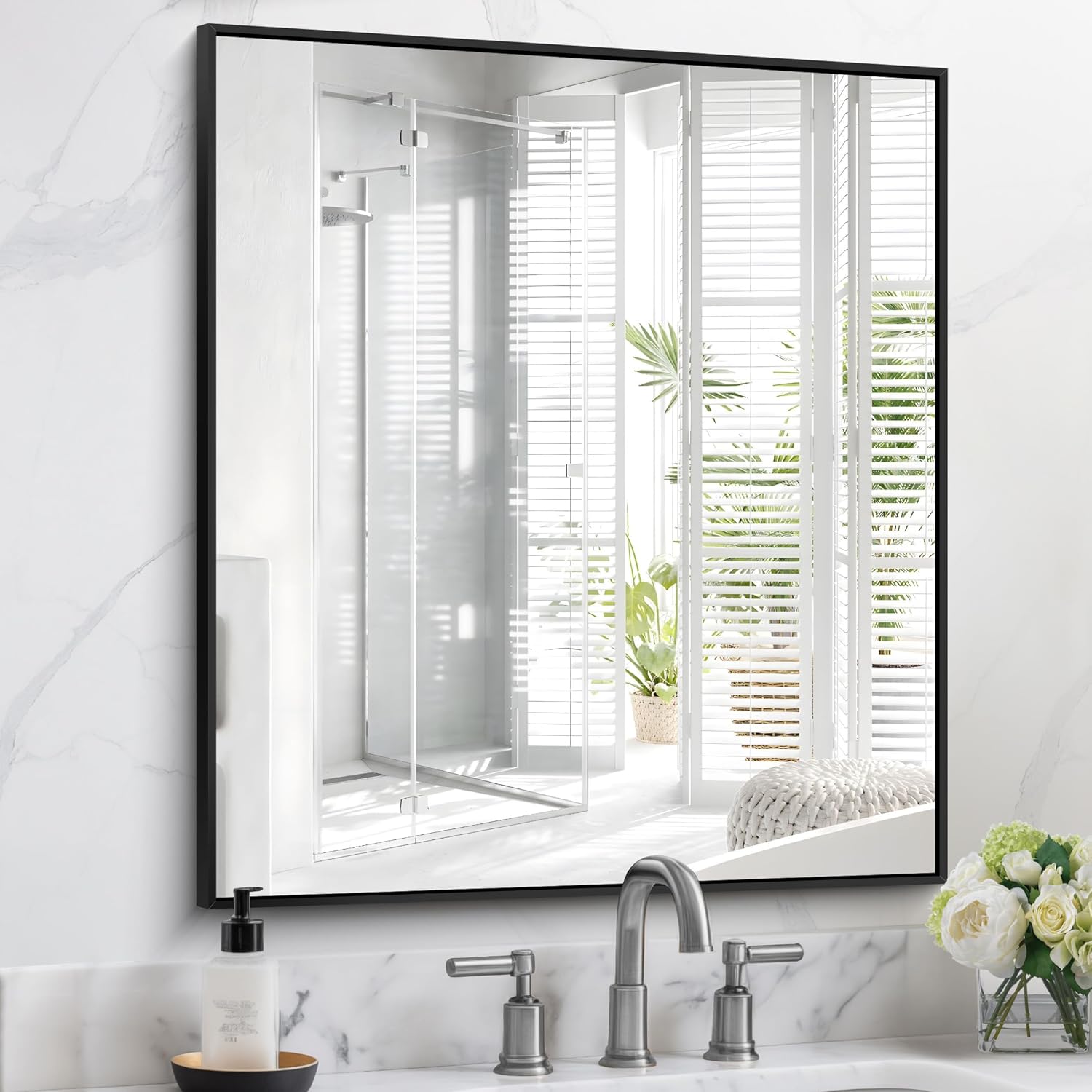Black Bathroom Mirror for Wall, 30x36 Inch Rectangle With Metal Frame, Modern Vanity for Bathroom Living Room, Entryway Hangs Horizontal or Vertical