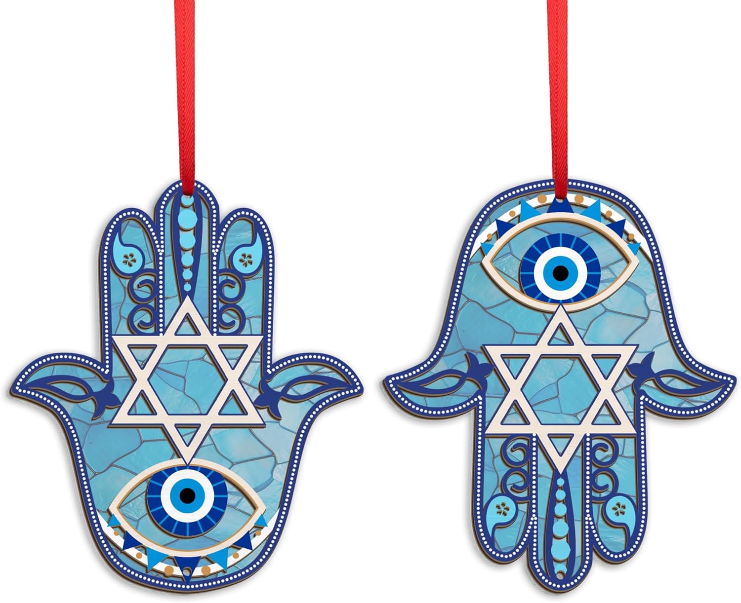 - HANUKKAH GIFTS FOR WOMEN, MEN - Embrace the symbolism of the Hamsa protection amulet with these Christmas tree ornaments. Featuring the Star of David and Blue Evil Eye design, our house warming gifts new home, good luck gifts for mom, friends add a touch of spiritual room decor to your Christmas decorations, blending the spirit of Hanukkah and Jewish tradition with the season's joy.