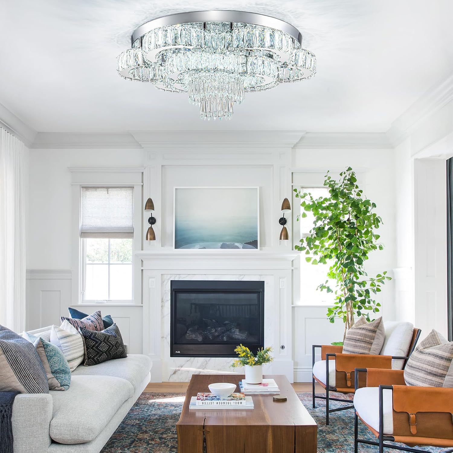 - -Wide Application: it’s perfect to put this flush mount chandelier in large space or low ceiling such as your living room, dinning room, kitchen, bedroom, closet, foyer, porch, farmhouse, hallway, hall, study etc.