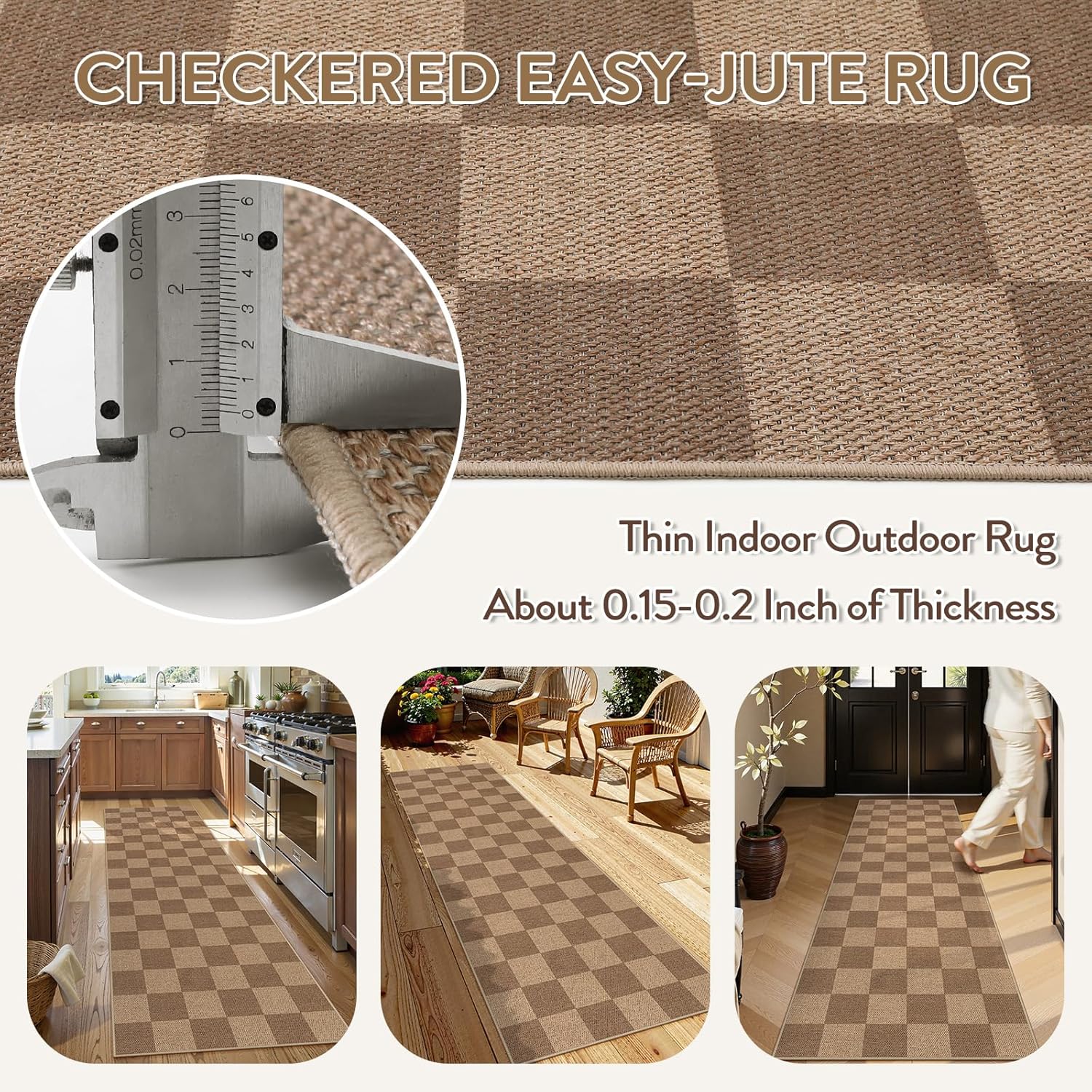 - Functional Rug: Checkered rug lends a sense of simplicity and comfort to your patio, hallway, entryway, kitchen, bedroom, camping, laundry room, RV, front door, living room, dining room, sunroom, deck, courtyard, or more indoor/outdoor rooms, creating a warm appearance