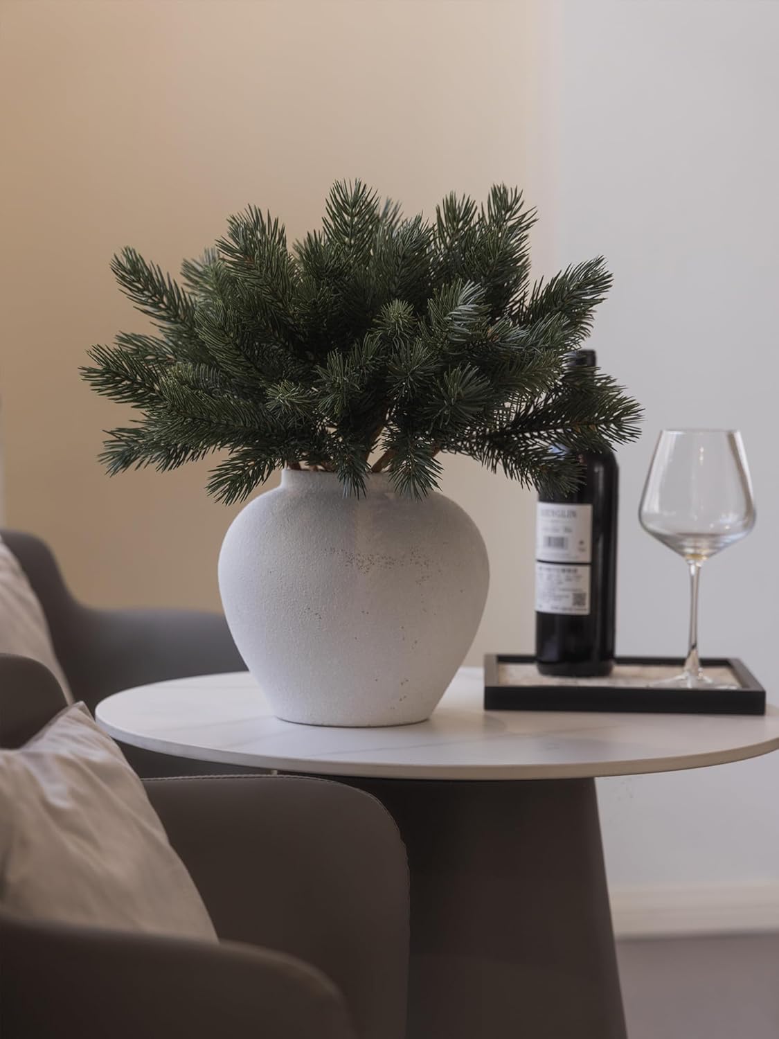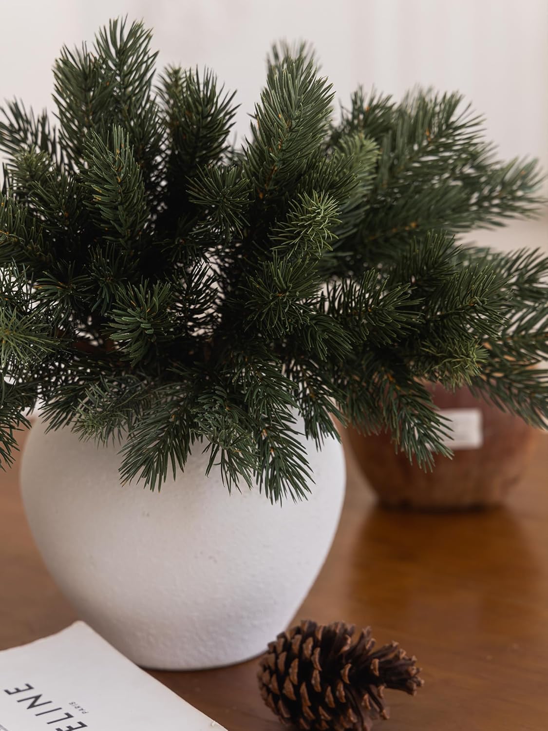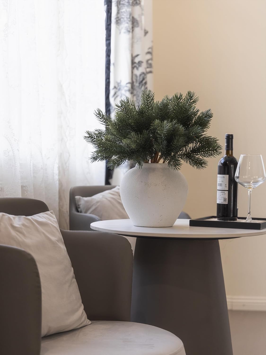 - 【Premium Quality and Natural Appearance】Crafted from high-quality PE, these branches mimic the natural green color of real cedar, offering both aesthetic beauty and durability. After opening the package, simply let the product air out for a few hours to eliminate any initial odor, ensuring a better experience. Note: Vase not included.