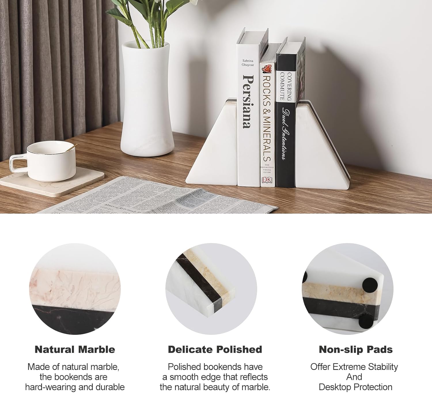 - STRONG AND DURABLE: Made of high-quality marble, modern bookends maintains long-term stability and will not be deformed by external factors, ensuring that your books are always securely placed.