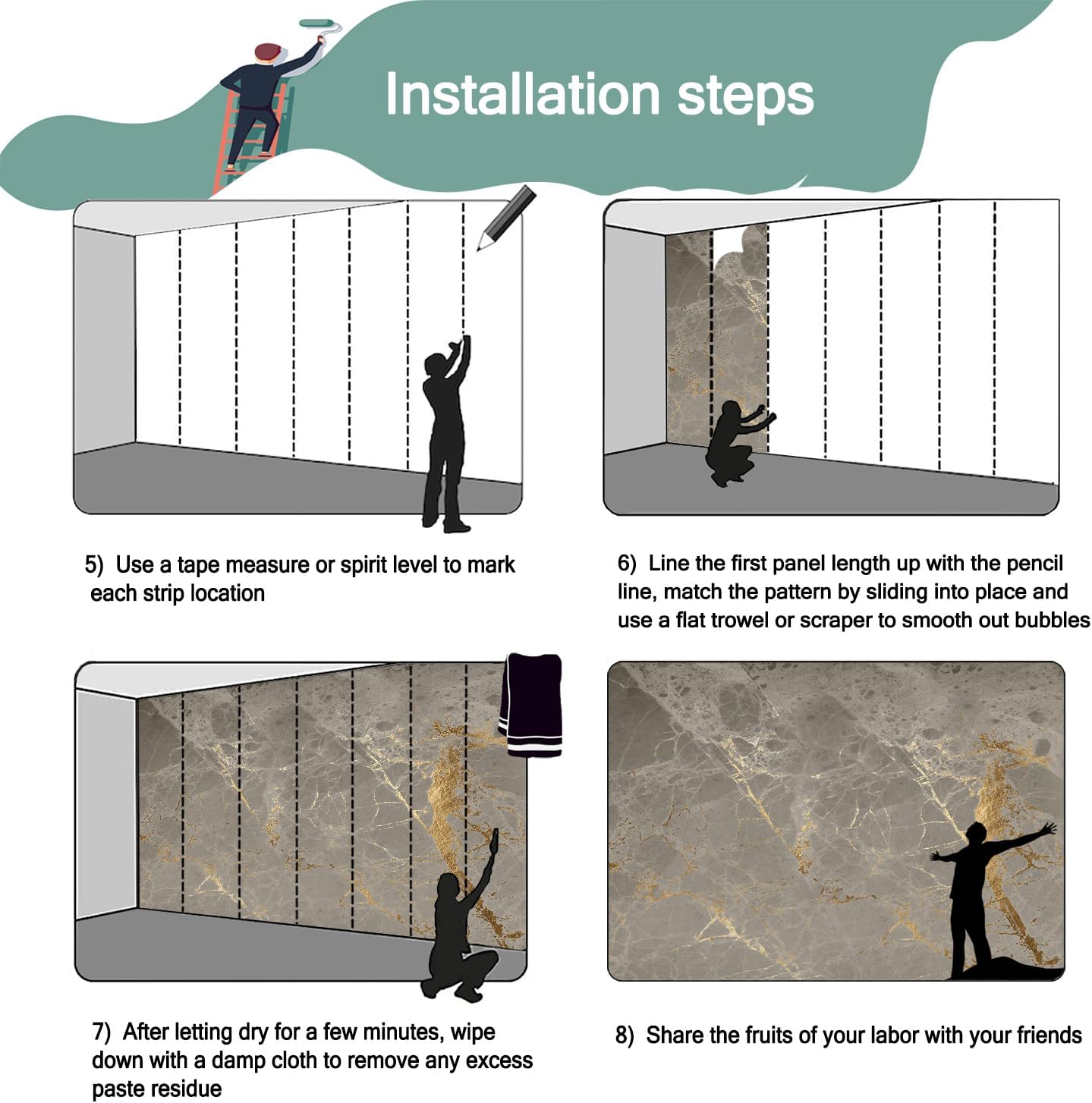 - Mural wallpaper size: 140 "W x 91 "H, divided into 7 sections, each section is labeled with a number underneath, there is no need to overlap the pattern when installing, just install according to the number labeled underneath the panel