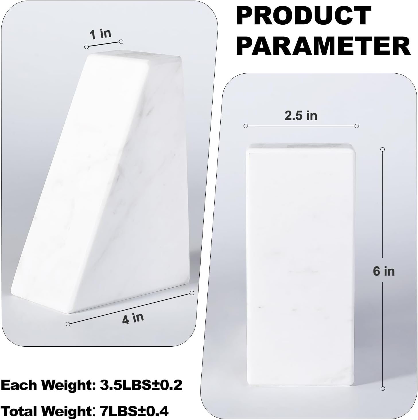 - NATURAL MATERIAL: The heavy duty marble bookends weight 7LB and are equipped with 4 non-slip pads to effectively minimize scratches on your desktop. Make your reading time more relaxing and ensure the safety of you and your family with this stone book ends for shelves.