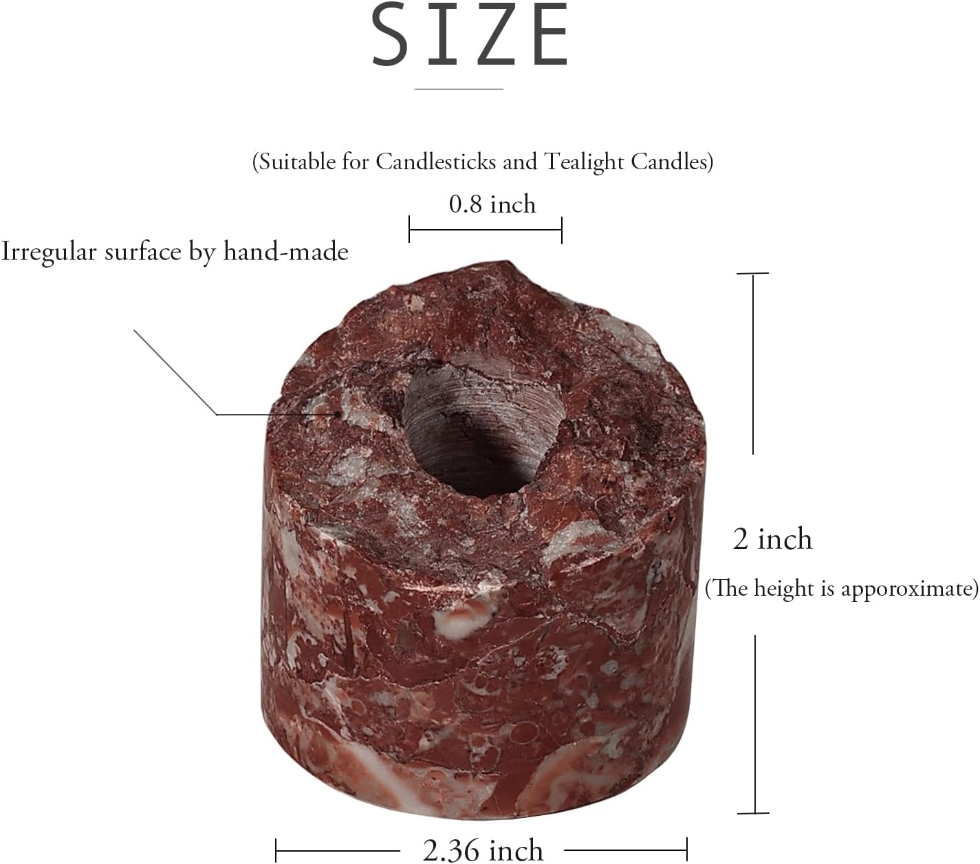 - Unique Hand-made Irregular Design: JIMEI candle holder are hand-crafted with superior Natural Travertine Marble, Irregular top design which gives each one their own subtle unique flair and style, each piece is a unique work of art, unique of natural,slight differences will be apparent from piece to piece.