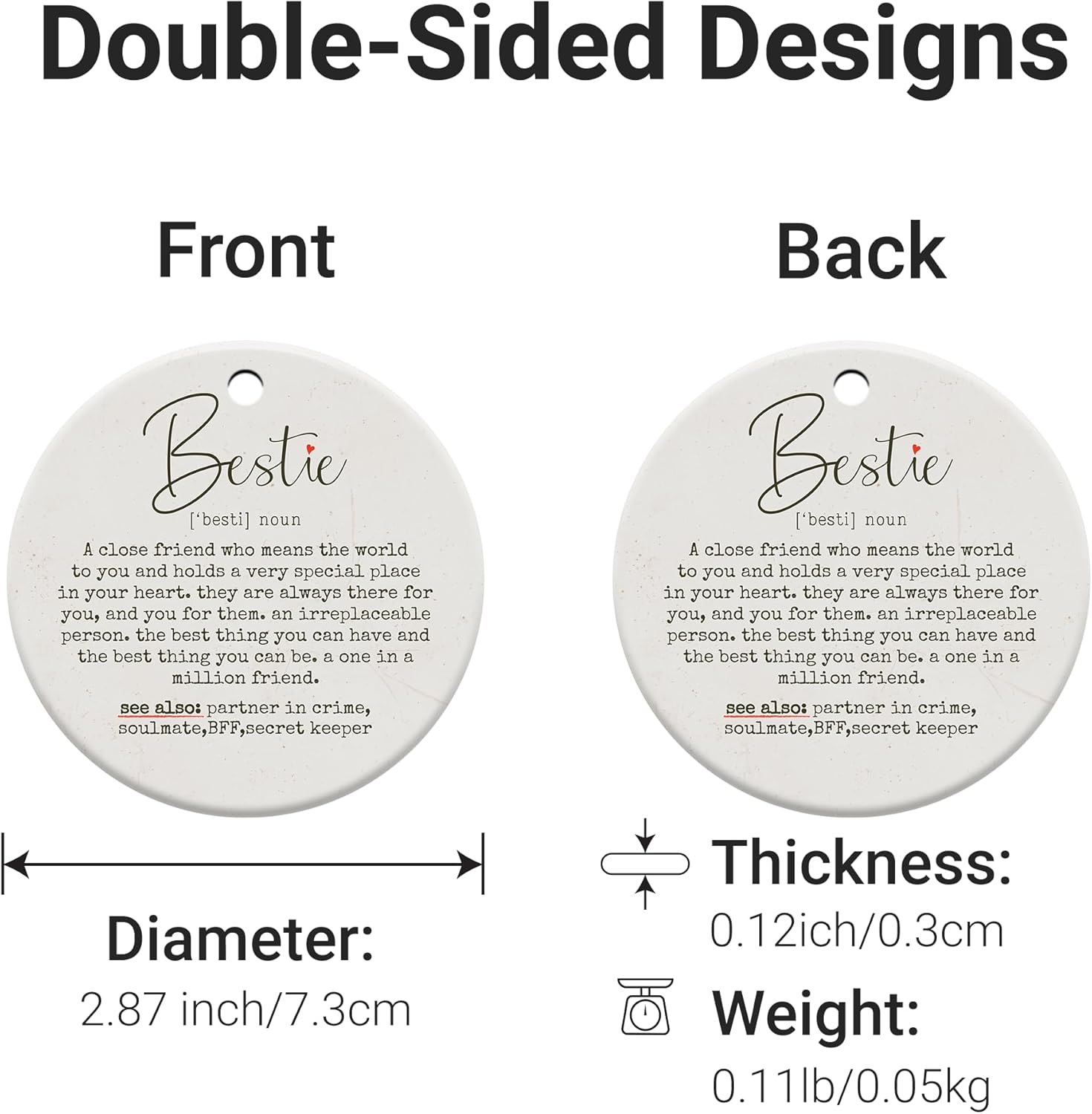 Friendship Gifts for Women, Best Friend, Funny, Work Besties, Sister, Friend Ornaments for Women, Ceramic Christmas Ornaments (Besties 2)