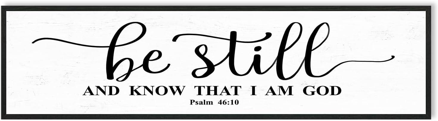 Be Still And Know That I Am God: Christian Bible Verse Wall Art Framed Scripture Sign Farmhouse Entryway Wall Hanging Plaque Religious Decor For Living Room Bedroom 12"X40"