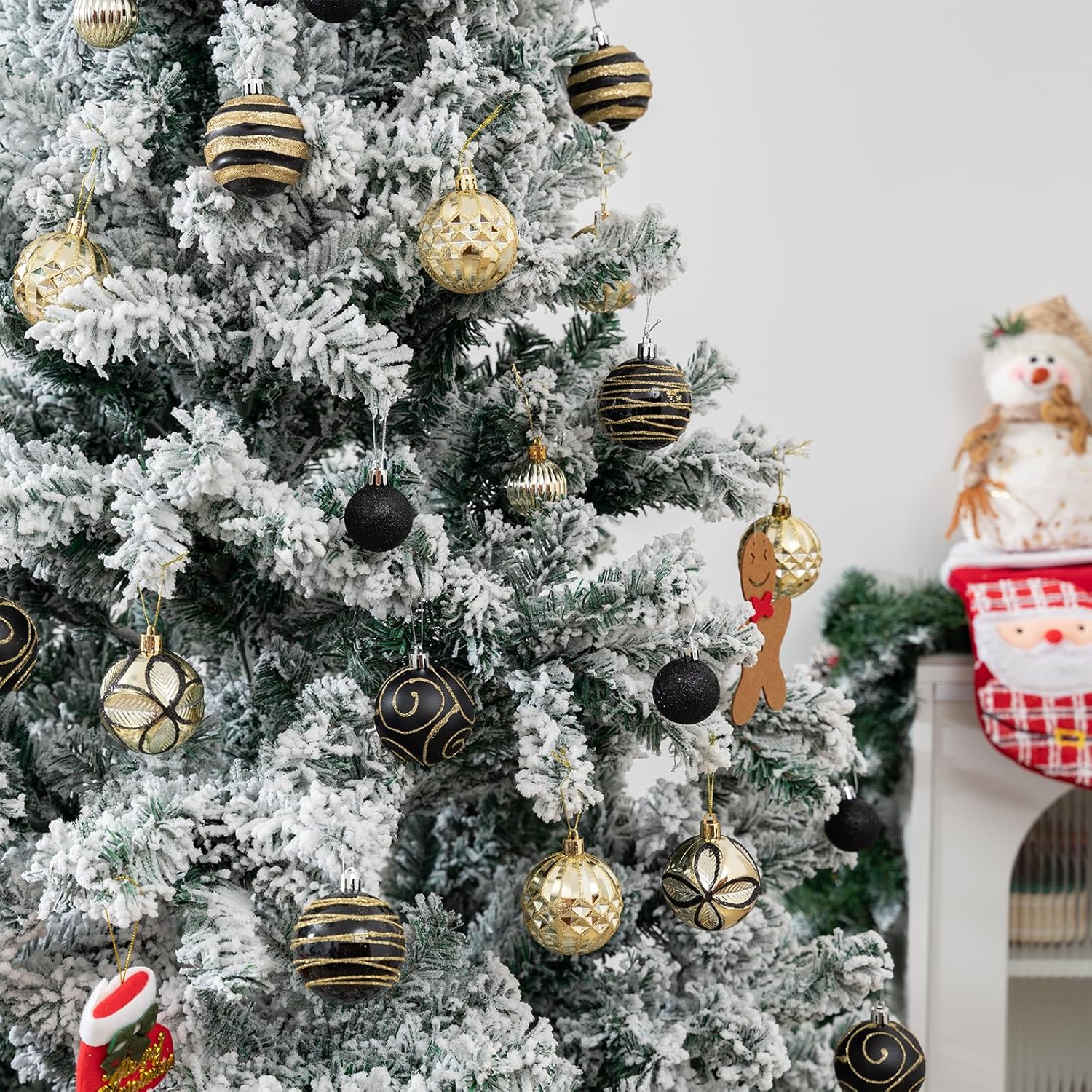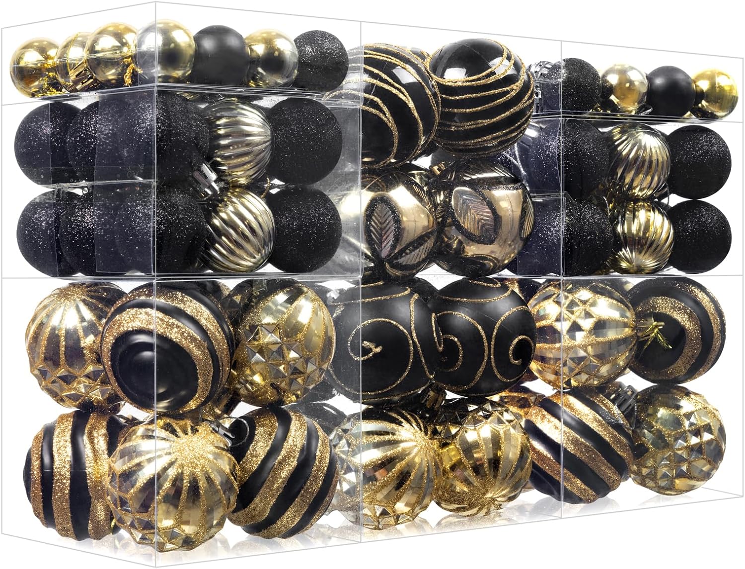 100Pcs Christmas Balls Ornaments Set, Shatterproof Christmas Decorations with Hand-held Gift Package for Xmas Tree/Holiday/Wedding/Holiday/Party Decor (Black & Gold)
