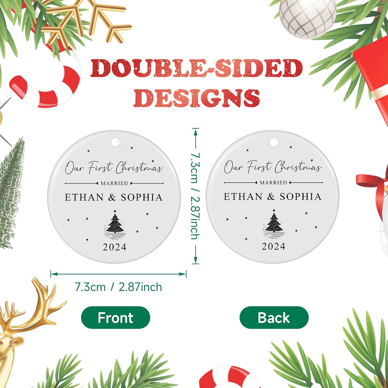 - 【Double-sided Printing Ceramic Ornaments】The custom ornament is made of high-quality ceramic, which can print on both sides for you. Its high-definition printing ensures clear and upscale appearance, preventing pictures from fading. This custom photo Christmas ornament is a lasting keepsake to remember your unforgettable holiday forever.