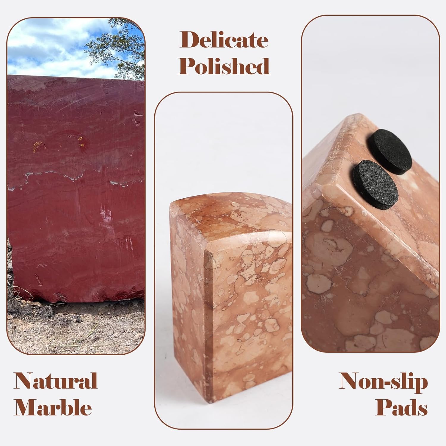 - NATURAL MATERIAL: The heavy duty bookend weight 7.5LB and are equipped with 4 non-slip pads to effectively minimize scratches on your desktop. Make your reading time more relaxing and ensure the safety of you and your family with this marble beookend.