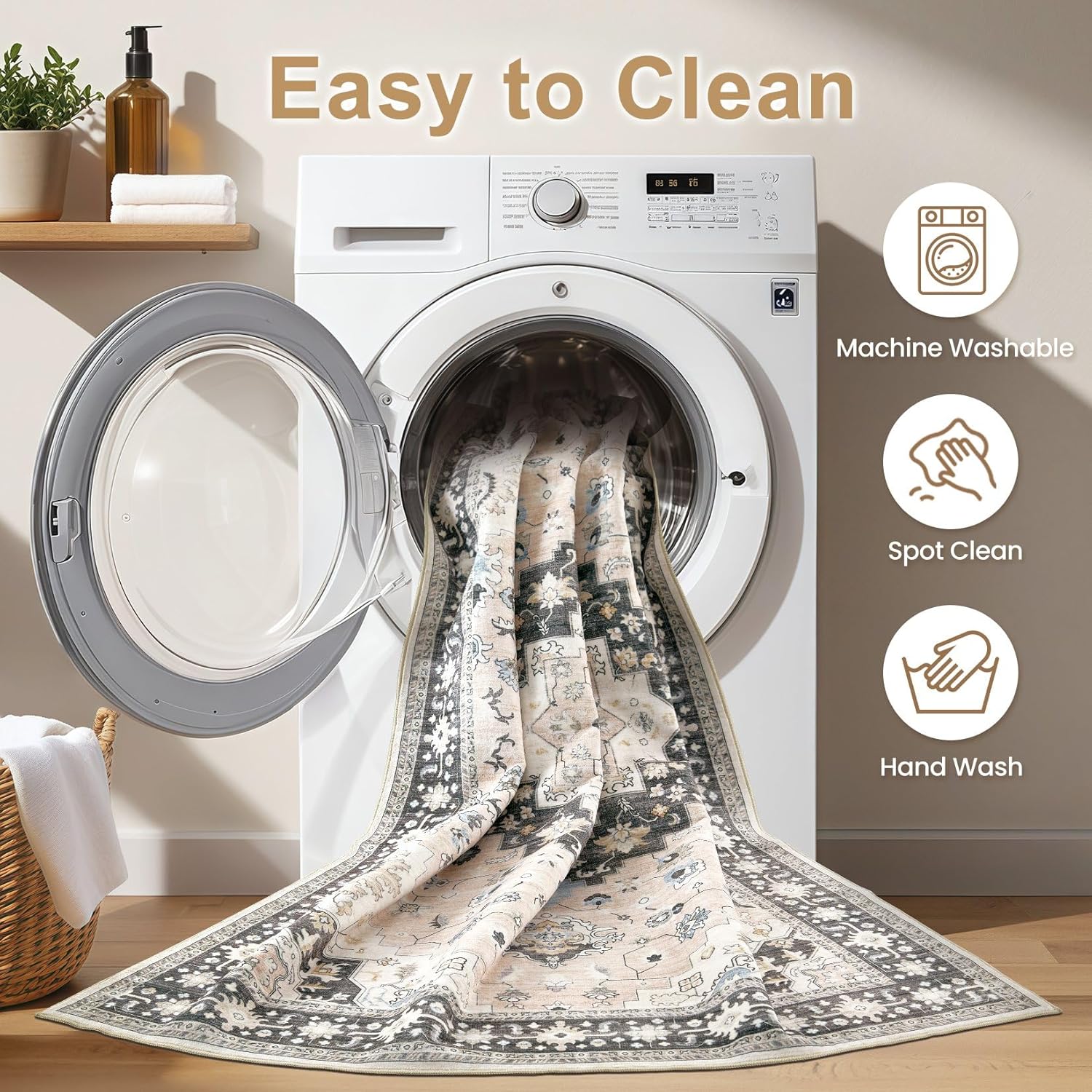 - Machine Washable Rug: The advantages of washable rug is that they are machine washable and easy to maintain, while 6x9 size and above are recommended to the nearby commercial laundry