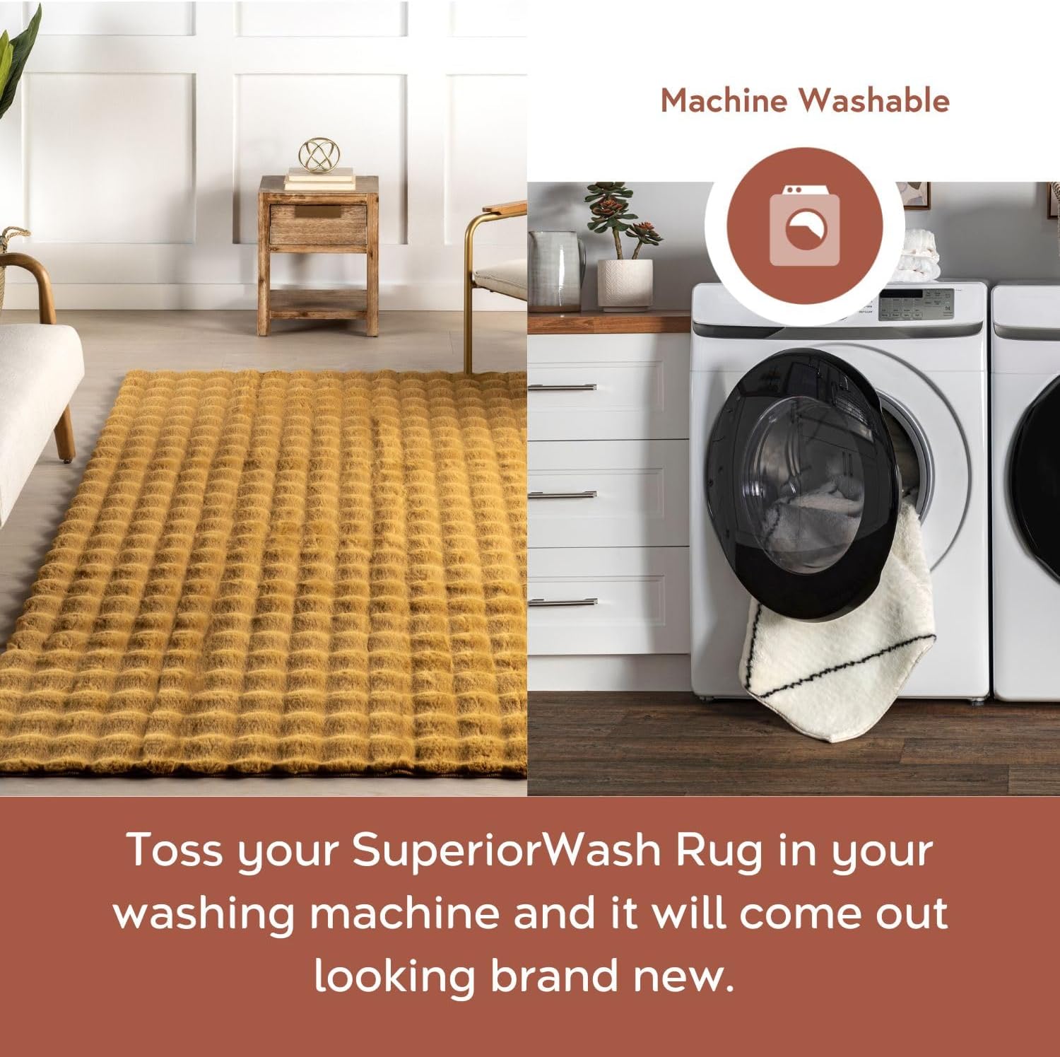 - Machine Washable: When that inevitable “oops” happens, simply place your area rug in the washing machine with cold water on the gentle cycle (do not use bleach). We recommend line drying your rug or without heat on the air-only drying cycle.