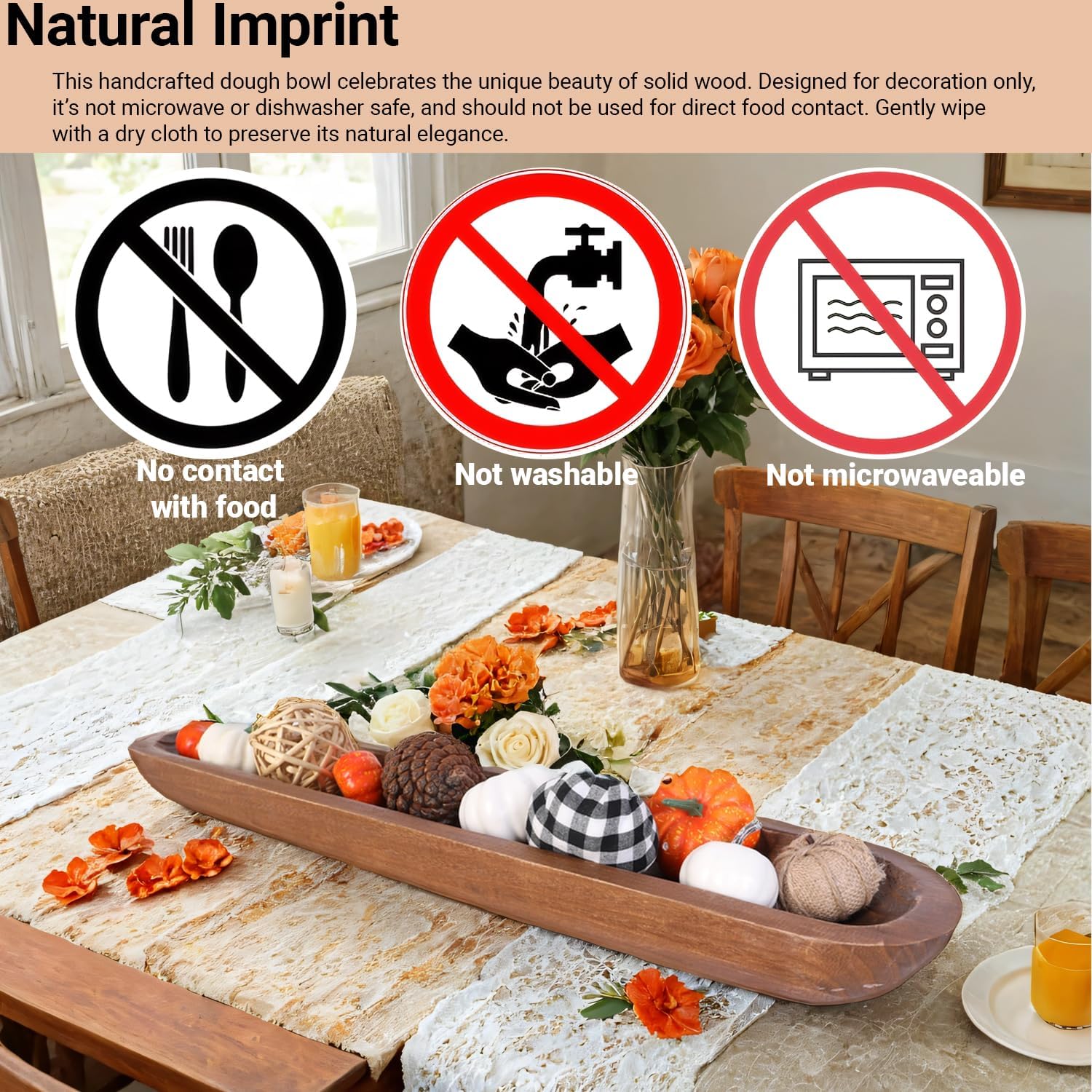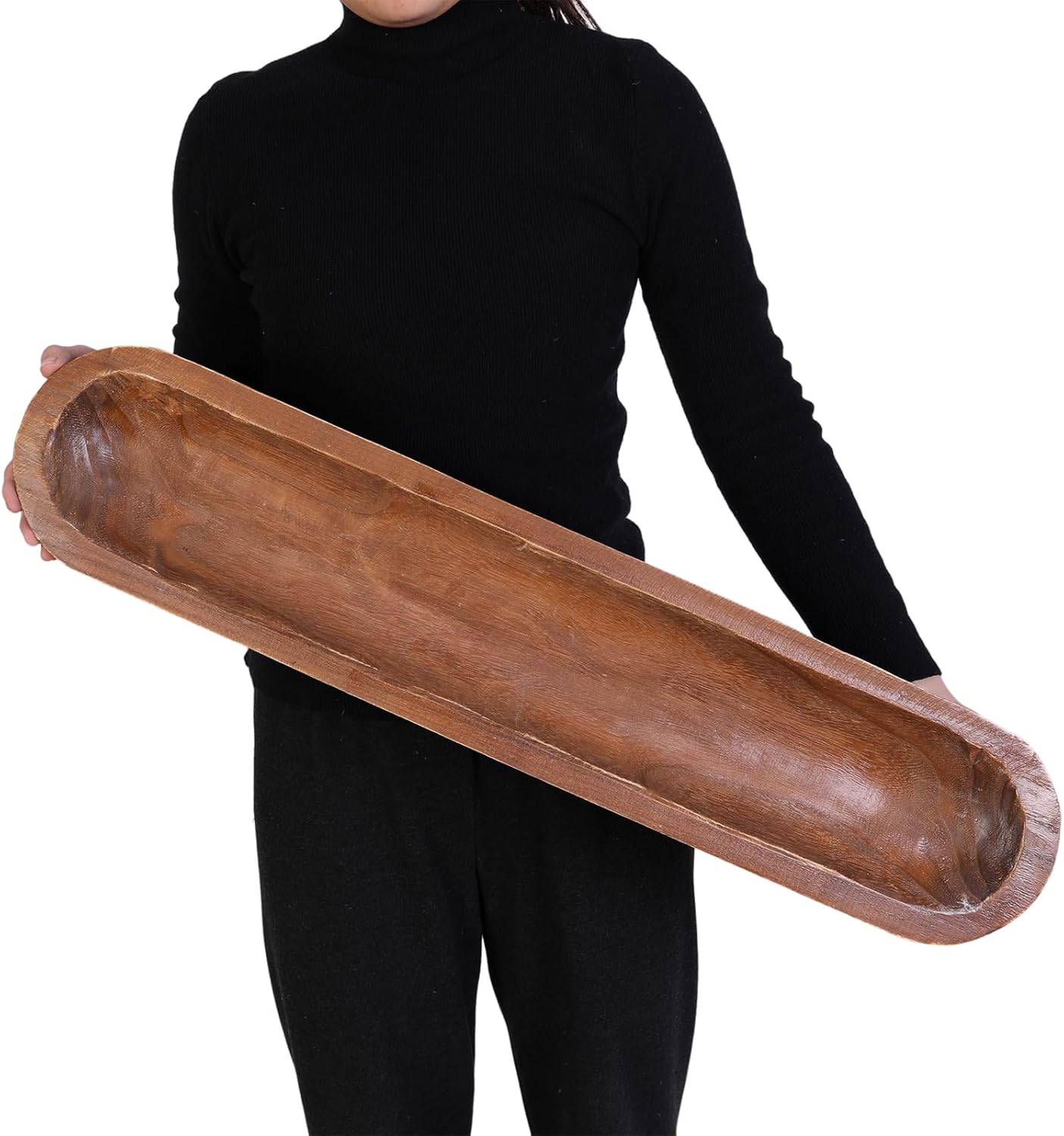 - 【Multipurpose】Wooden dough bowls for decor centerpiece on kitchen counter, entryway table and MORE! A long wood bowl is also good as a trinket tray for small objects such as keys, jewellery, and cosmetics. It can be placed anywhere in the home, such as the dining room, living room, bedroom, garden, etc.