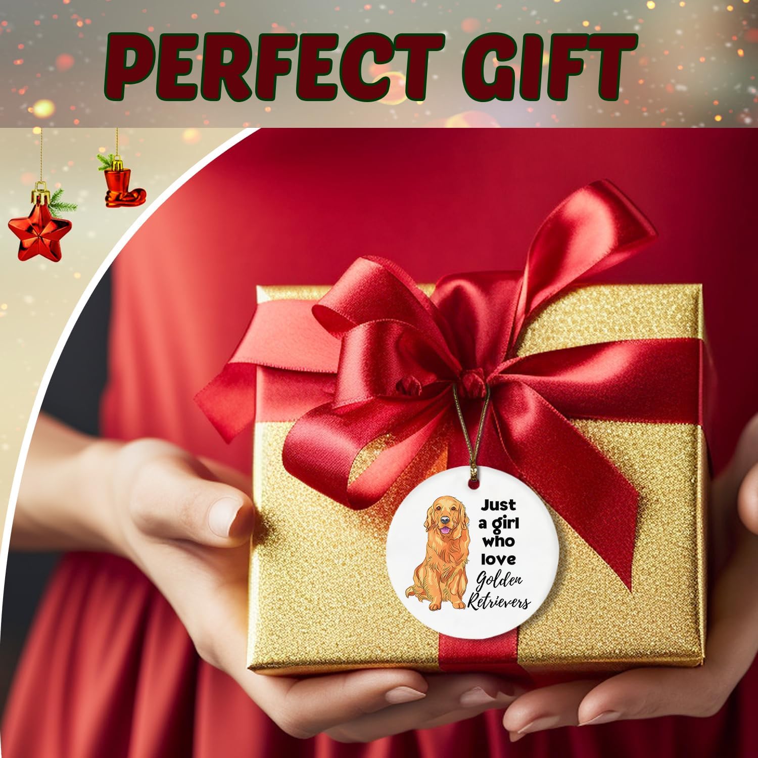 Golden Retriever Ornaments for Christmas Tree, Dogs Lovers Gifts for Women, Just a Girl Who Loves Golden Retriever Ceramic Christmas Tree Ornaments