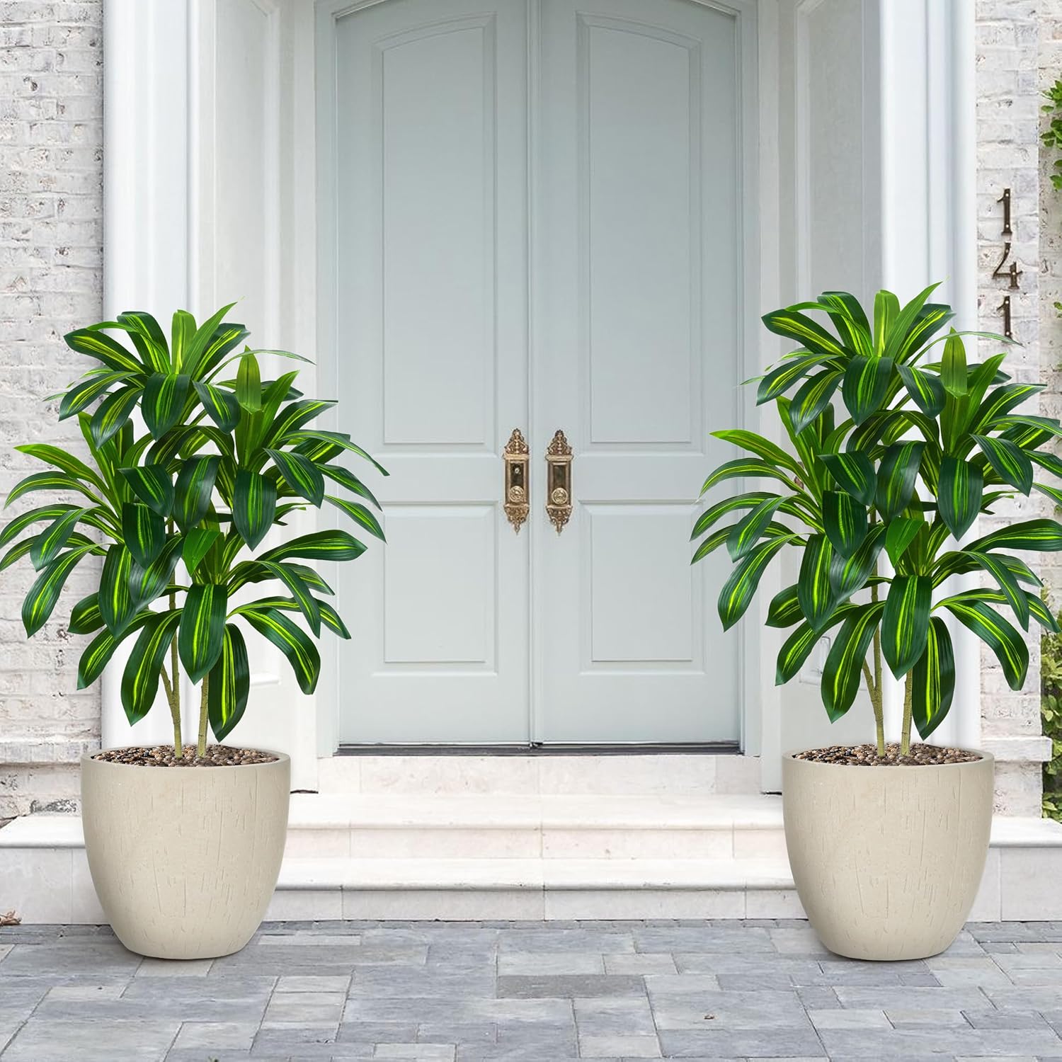 - White Planter - Dracaena tree fake plant with white planter, no matter where fake plant is placed in your home, it is perfect. products that include all the essential components: 2 fake tree, 2 planter.