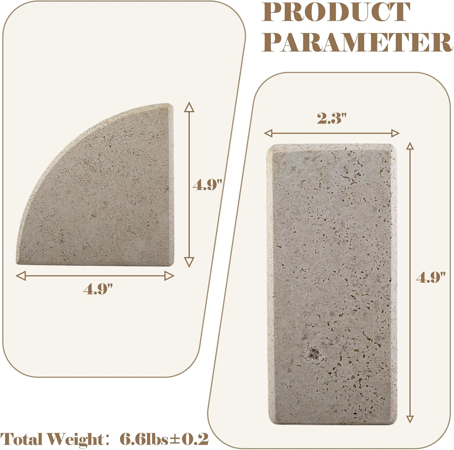 Marble Bookend for Shelves, Non-Skid Bookends for Heavy Books, Heavy Duty Book Stopper for CDs, Luxury Book Shelf Holder, Quarter Circle Design Book Ends Decorative, Moleanos Beige, Set of 2