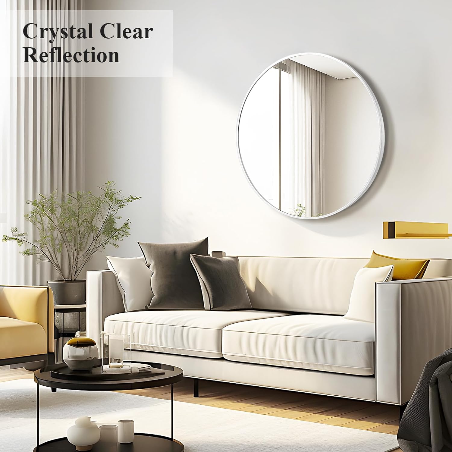 - Crystal Clear Reflection - Fabuday round wall mirror is made of high-definition glass, smooth and flat mirror with high reflectivity, providing clear and real images without any distortion. Besides, the reflection makes the room look bigger and brighter, that is nice and can elevate the space