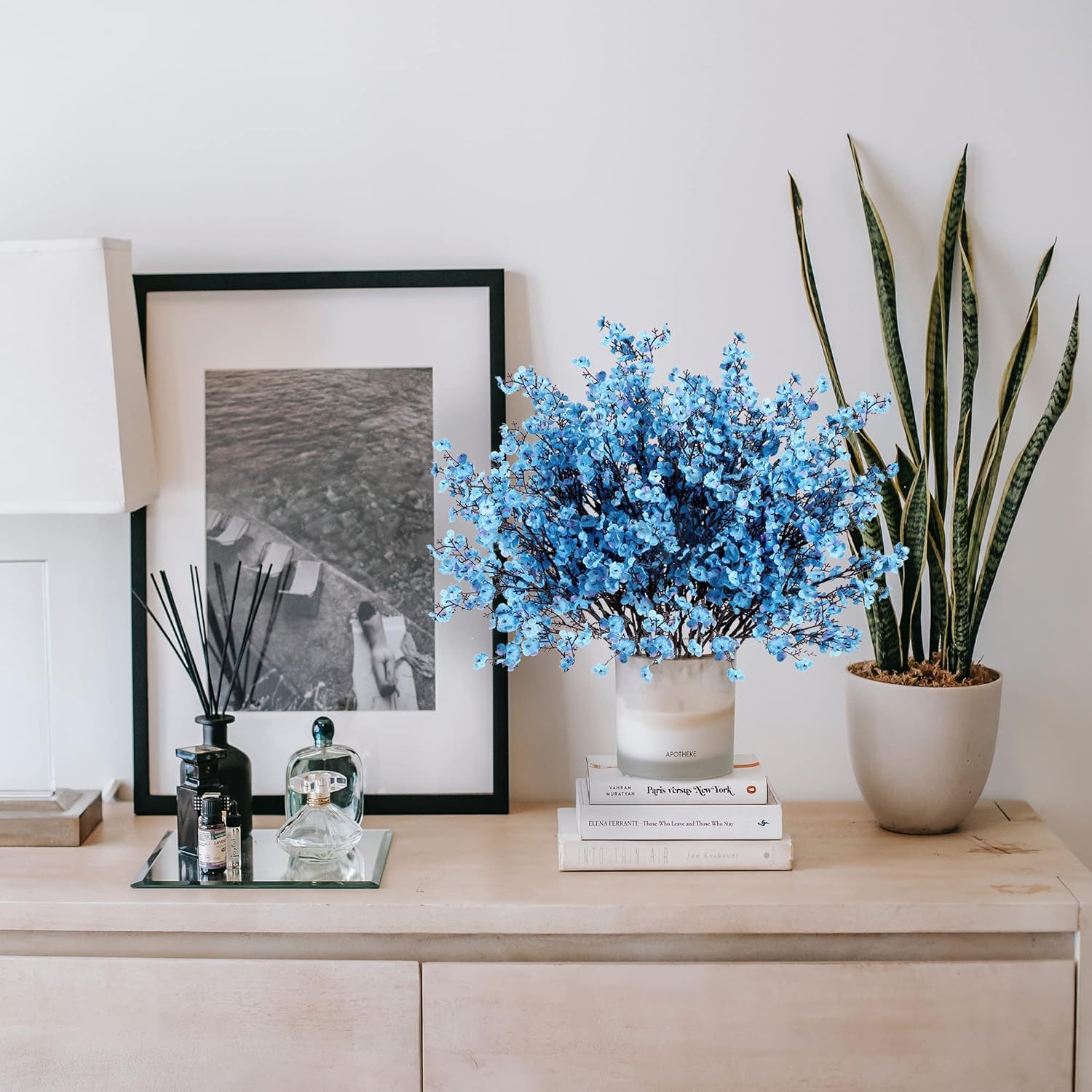Sggvecsy 6 Pcs Babys Breath Artificial Flowers Gypsophila Bouquets Bulk Real Touch Fake Silk Flowers for Home Wedding DIY Floral Arrangement Kitchen Table Centerpiece Festival Decoration (Blue)