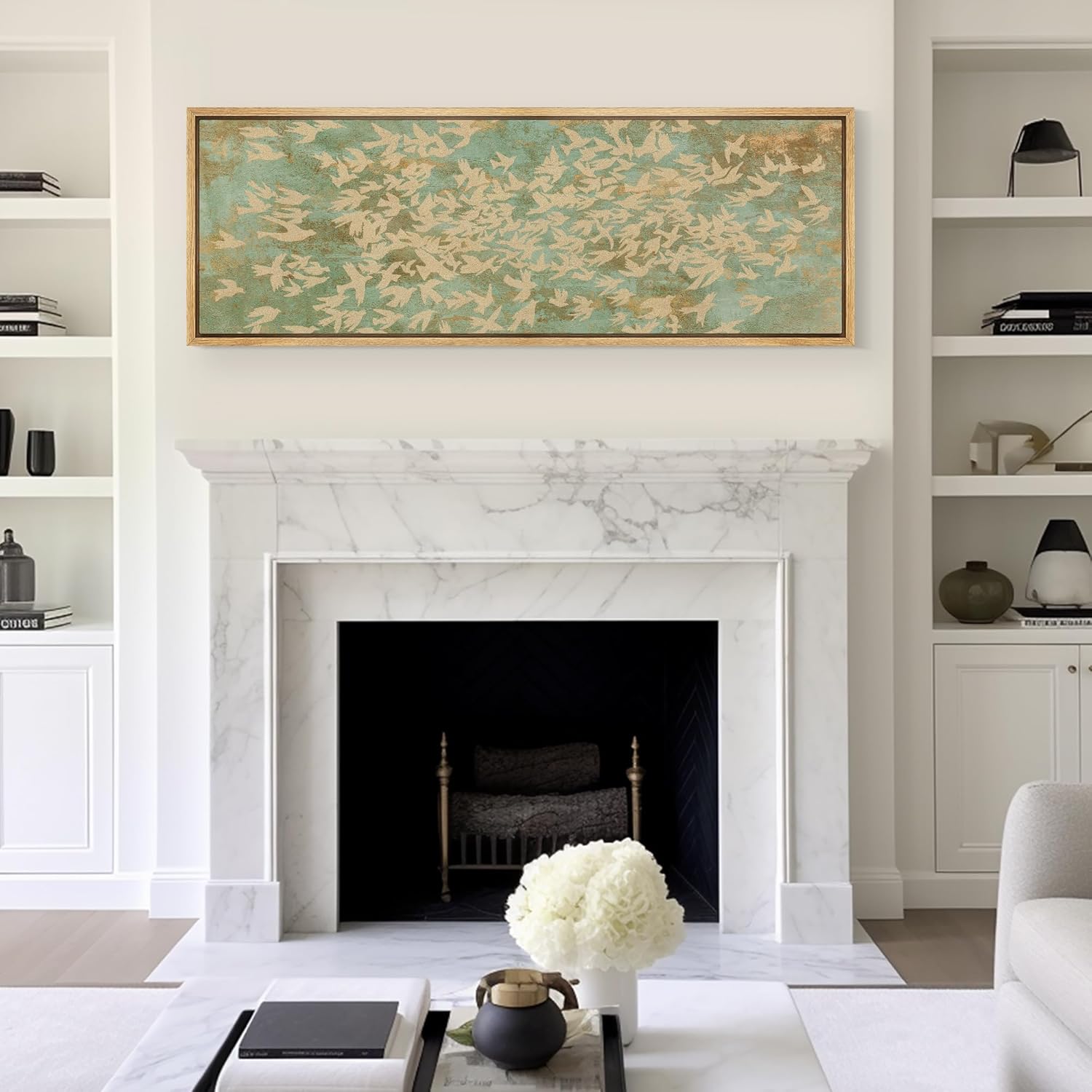 MUDECOR Large Framed Canvas Print Wall Art Rustic Birds in Flight Abstract Pattern Antique Retro Fine Art Illustrations Decorative Colorful for Bedroom - 60"x20"