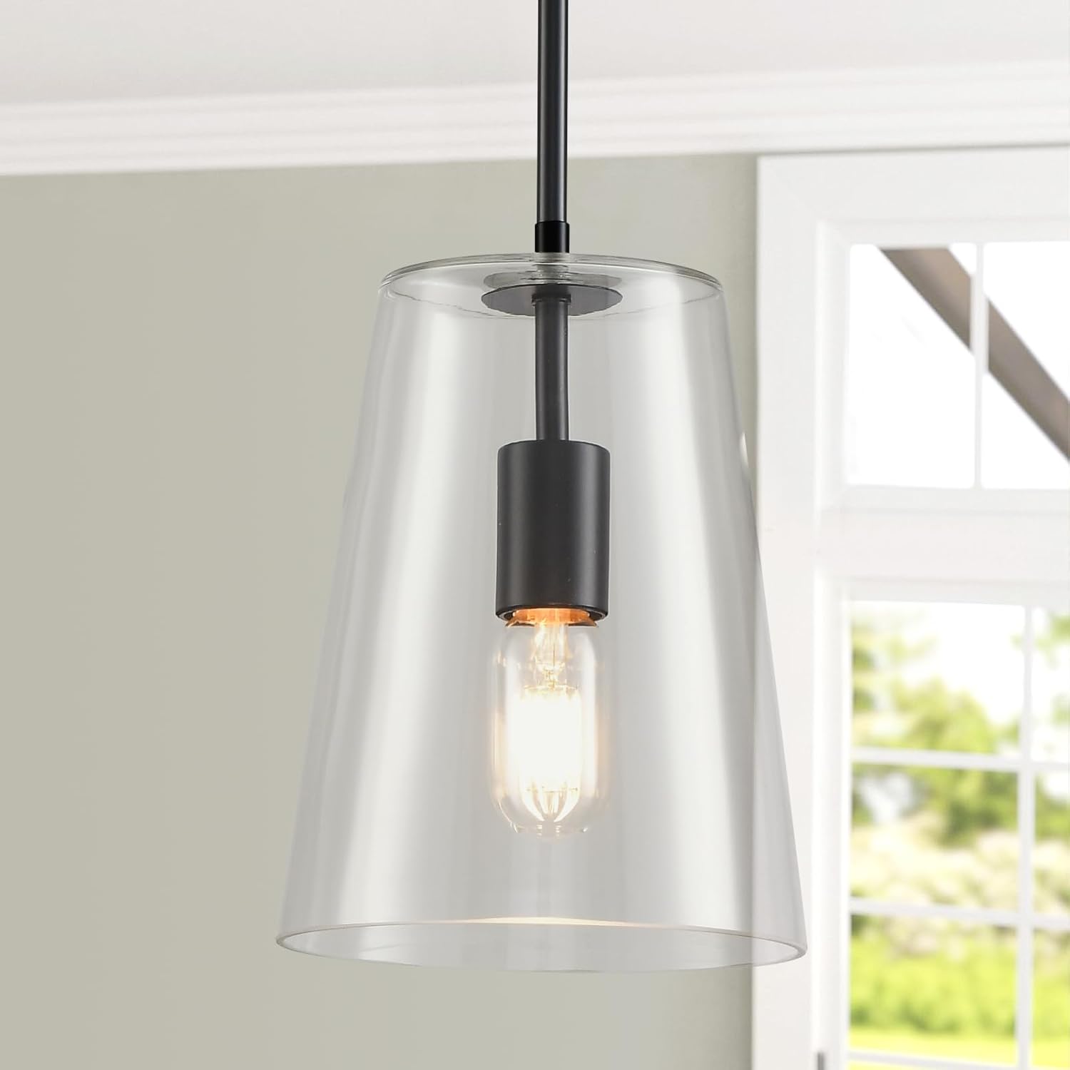 Black Big Pendant Lights Kitchen Island - Clear Glass Pendant Light Fixture Multiple Stems Rods 3 Units 12 Inch 3 Units 4 Inch (2 Pack Black Downrod Pendant with 7.5in W 9.5in H Shade)