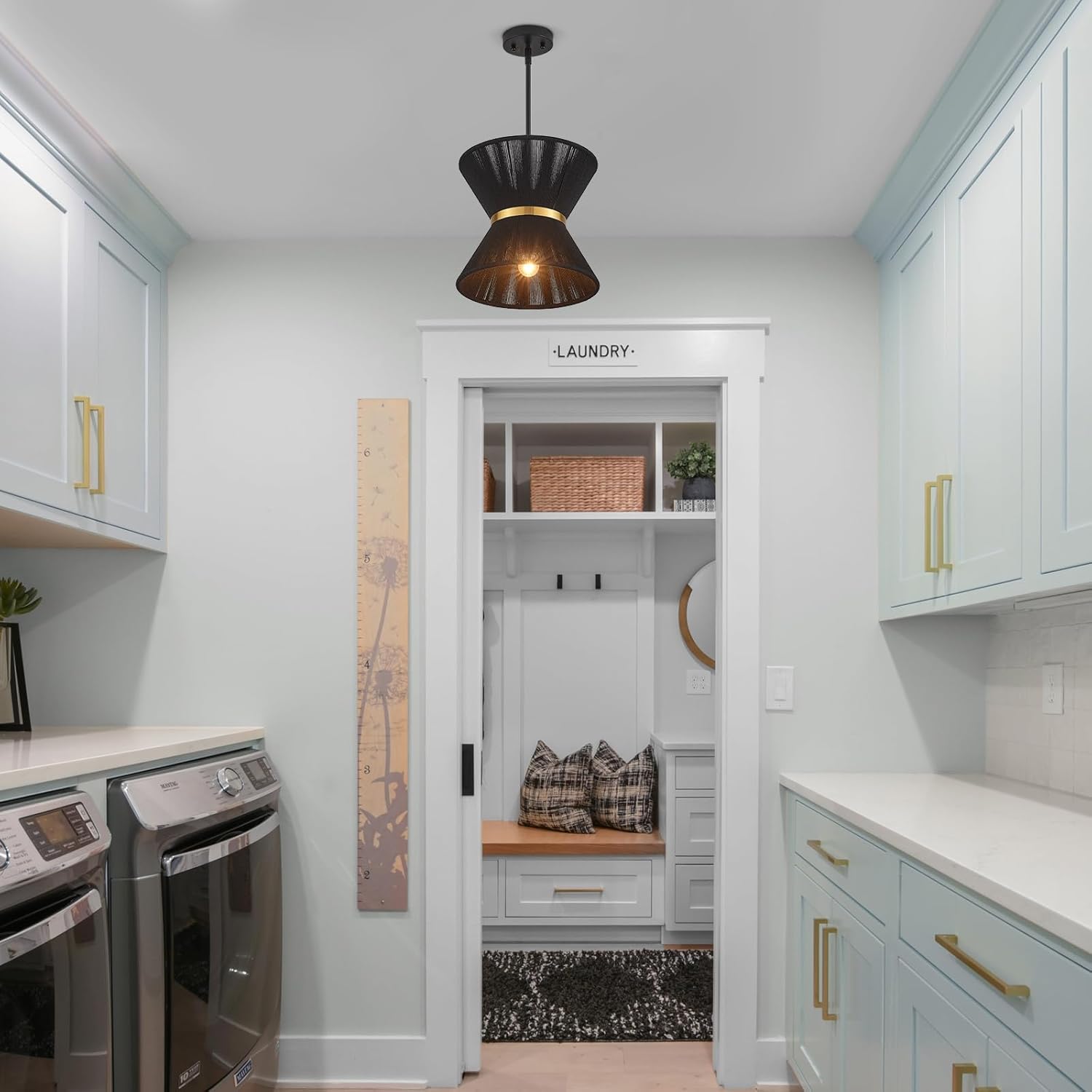 - Elegant Design: This woven rattan chandelier is made of wicker woven with high-quality metal frames finished by black, combining boho, modern, and elegant feelings to your home.