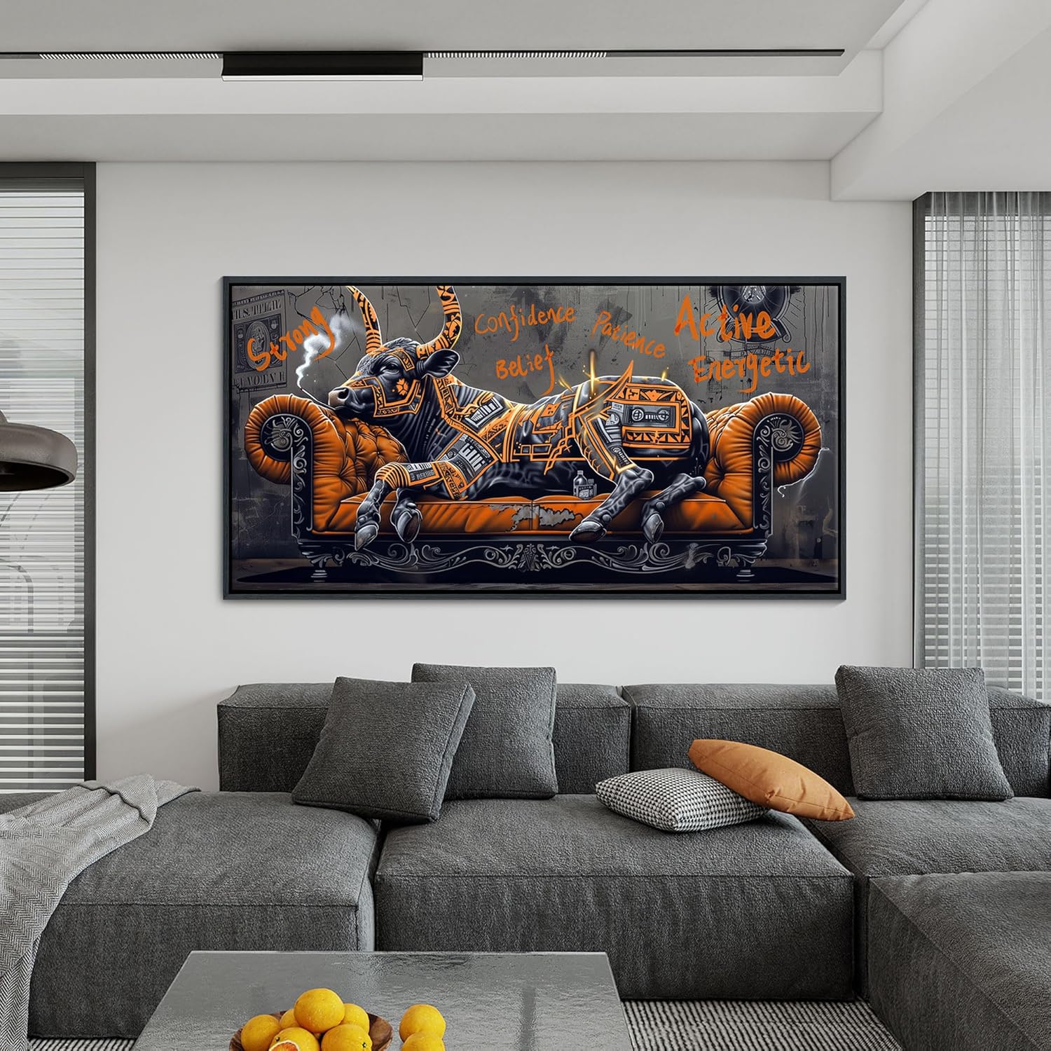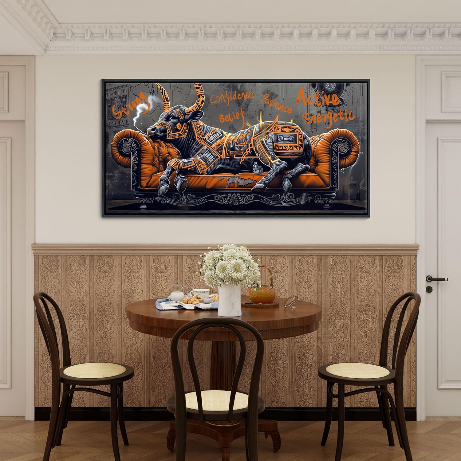 JEAWA Framed Canvas Wall Art - Large Creative Wall Art for Bedroom Living Room Bathroom, Modern Artwork Decor for Home Decoration, Strong Bull Color Graffiti, 29x58 IN