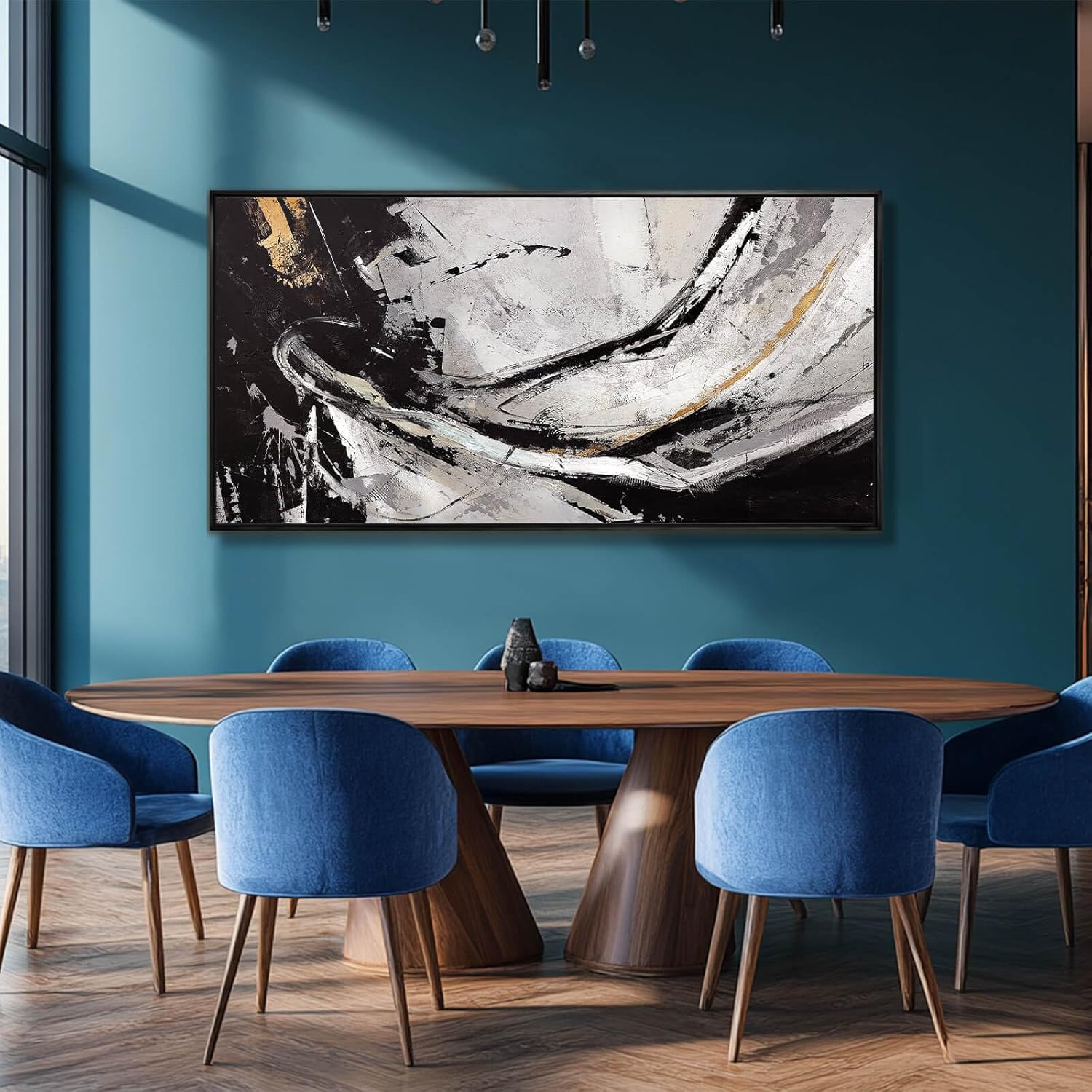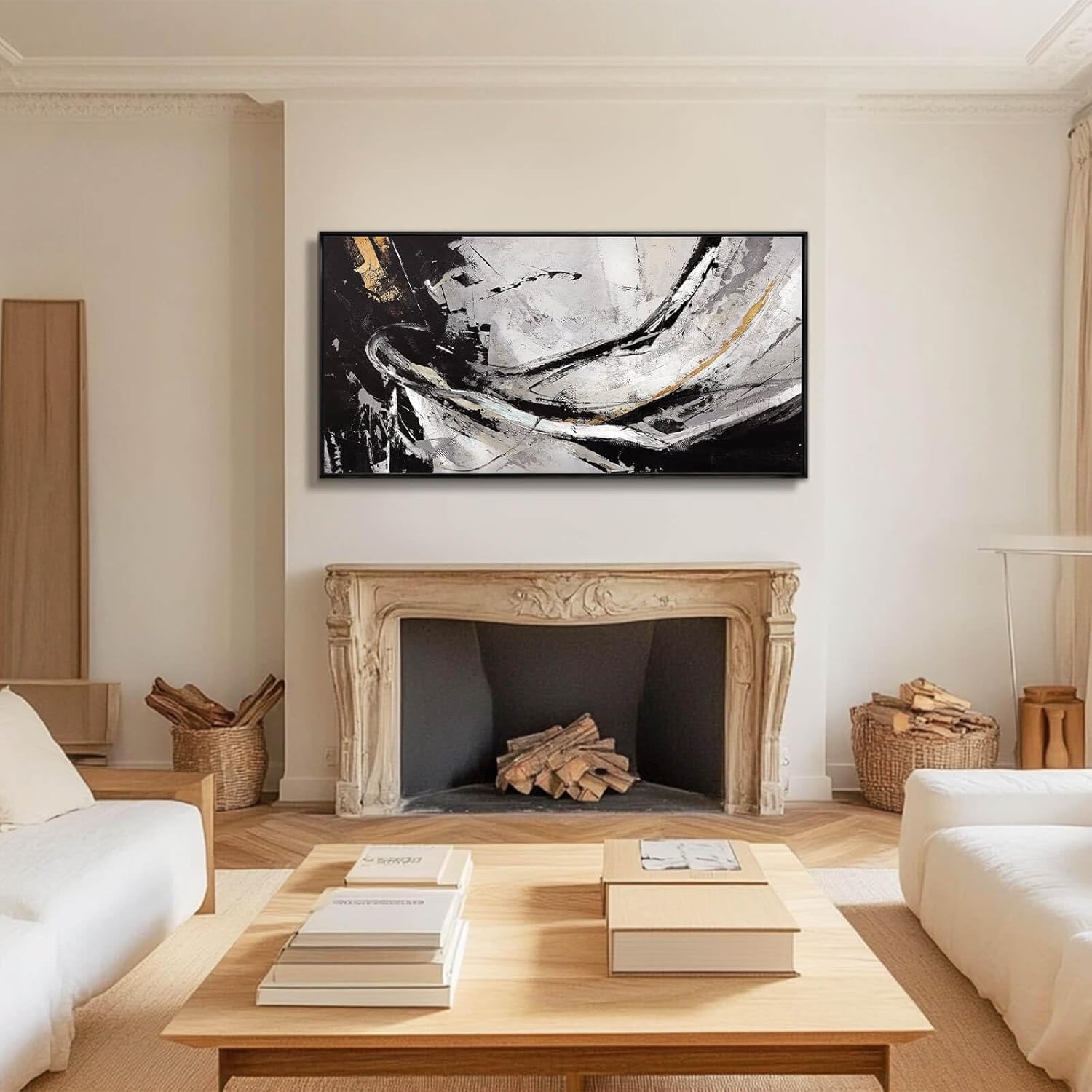 XIANSHOU Abstract Canvas Art Gold Line Painting Wall Art Black Poster Splash-ink Artwork 24"x 48" Gallery Wall Prints for Home Living Room Kitchen